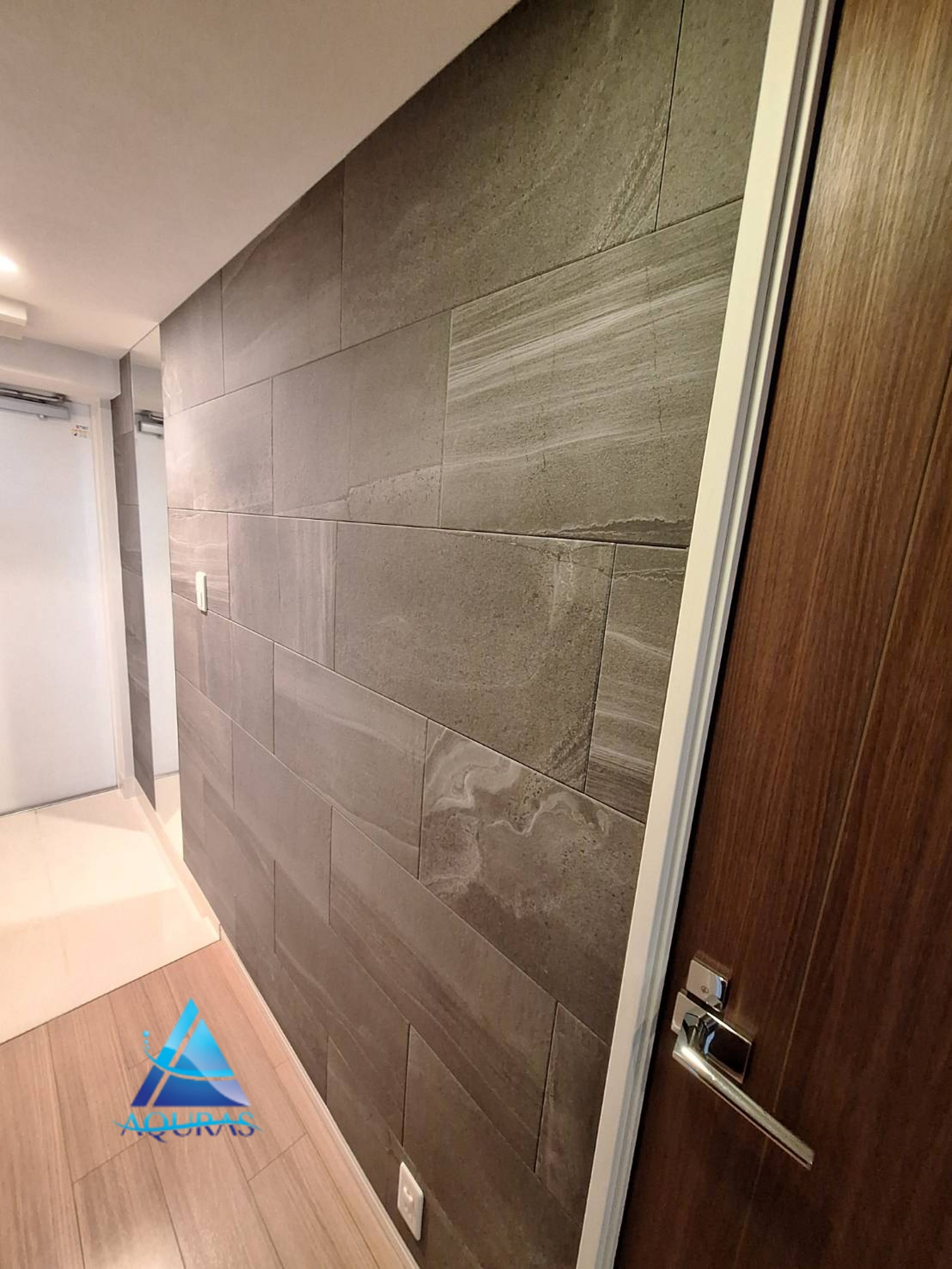 千葉県流山市 シティテラスおおたかの森ステーションコート K様エコカラット 玄関 ペトラスクエアから【ストーングレース】(チャコール)に貼り替え+ミラー幅45cm