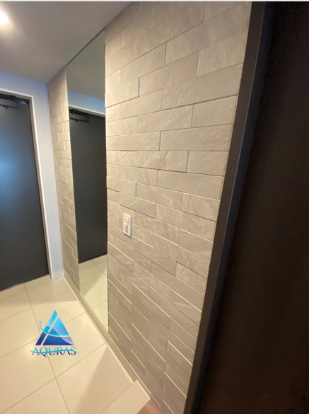 東京都調布市 ジオ調布 T様エコカラット 玄関【ラフクォーツ】(ライトグレー)+ミラー幅60cm