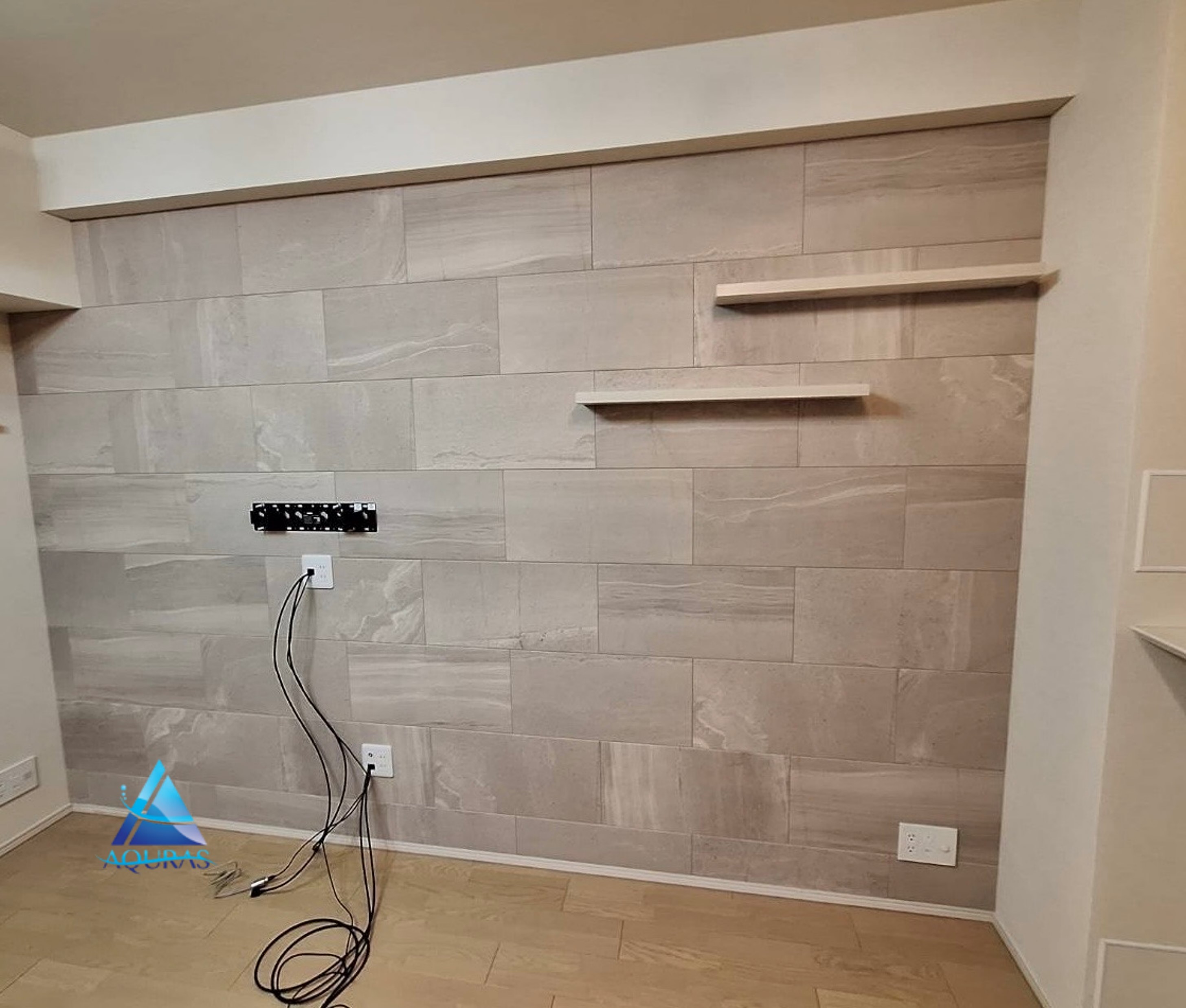 エコカラット リビング【ストーングレース】(ベージュ)馬貼り+ヴィータス1枚板横幅80cm+TV壁掛けビルトイン配線工事