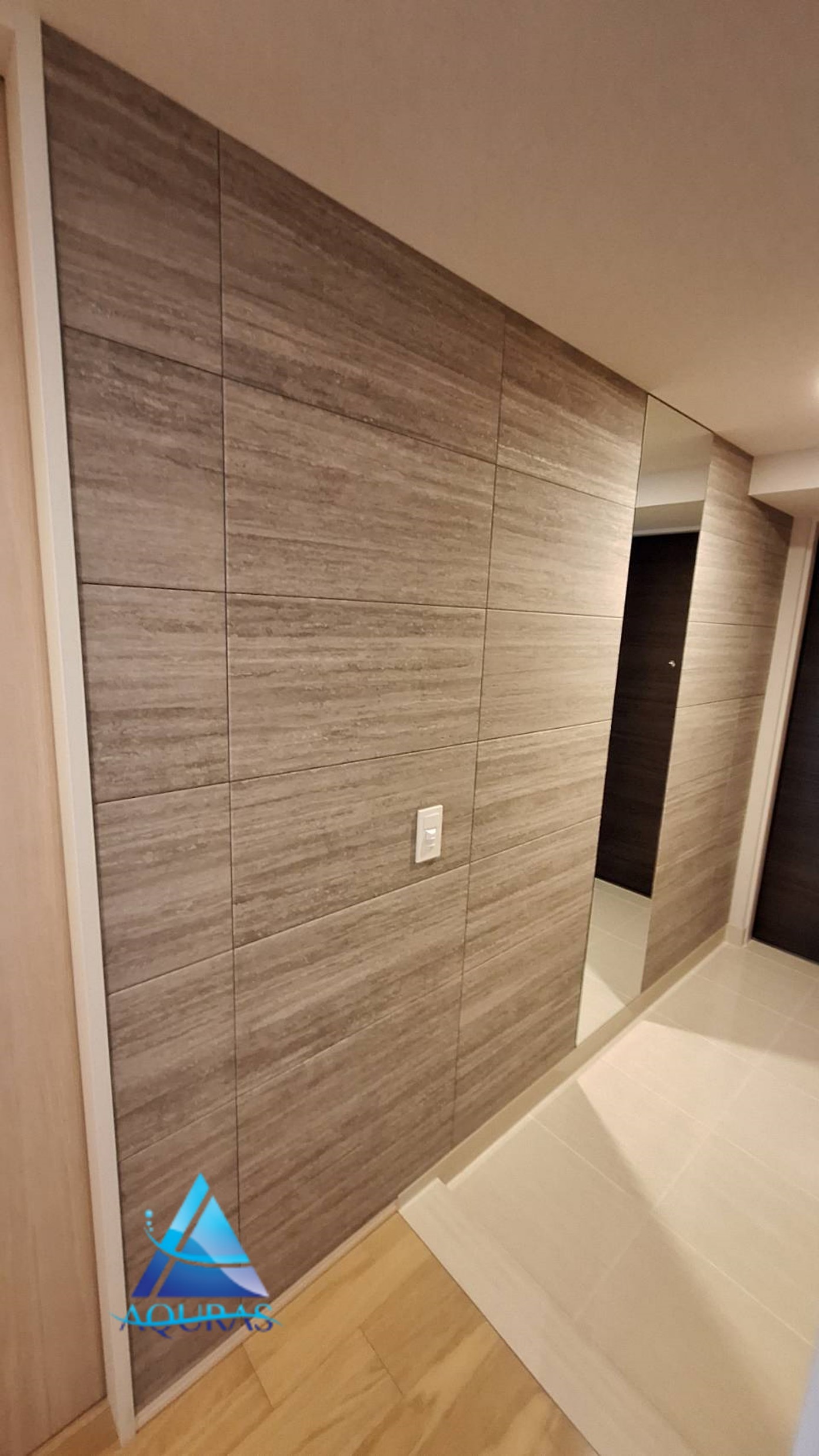 エコカラット 玄関【ネオトラバーチン】(グレー)芋貼り+ミラー幅45cm