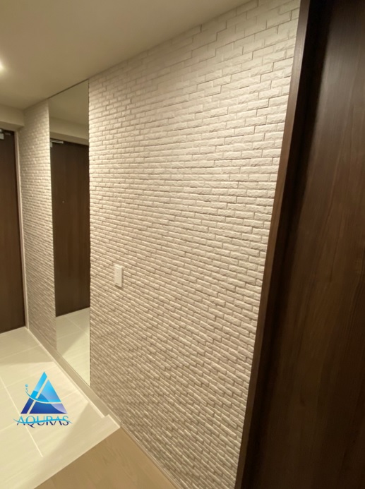 玄関【ランド石ハツリ面】(アイボリー)+ミラー幅60cm