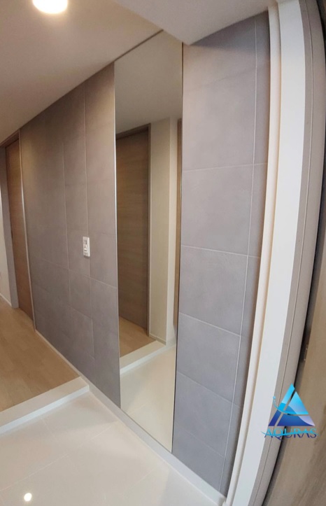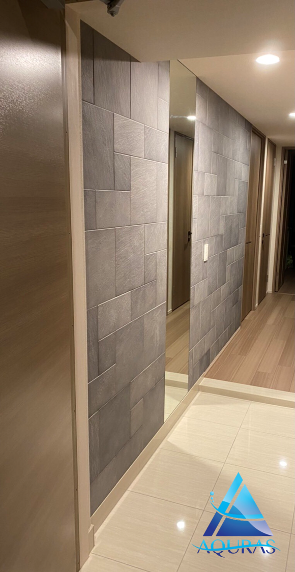 エコカラット 玄関 【ヴァルスロック】(グレー) 廊下 オーダーミラー幅50cm
