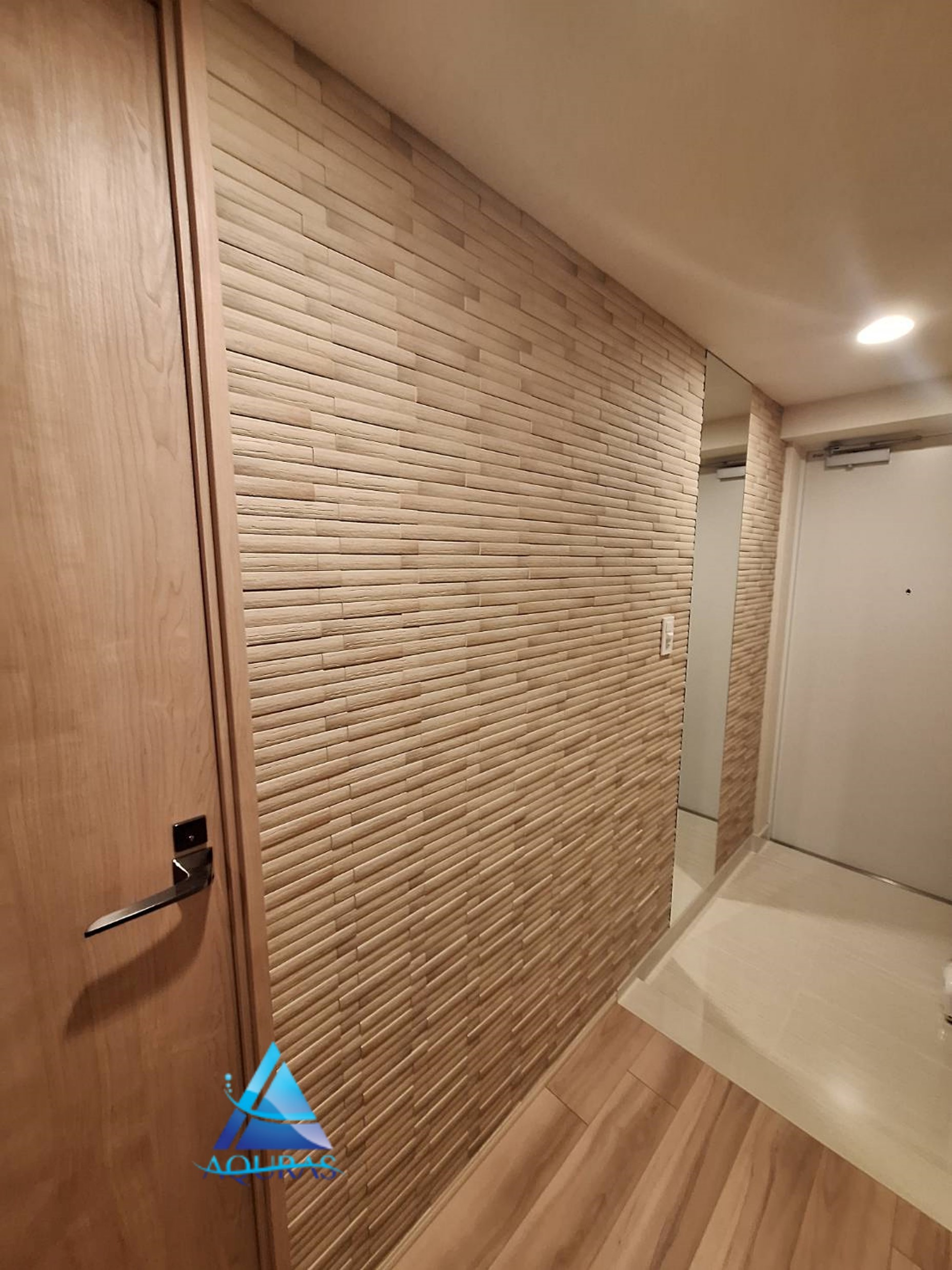 エコカラット 玄関【たけひご】(ライトベージュ)市松貼り+ミラー幅45cm