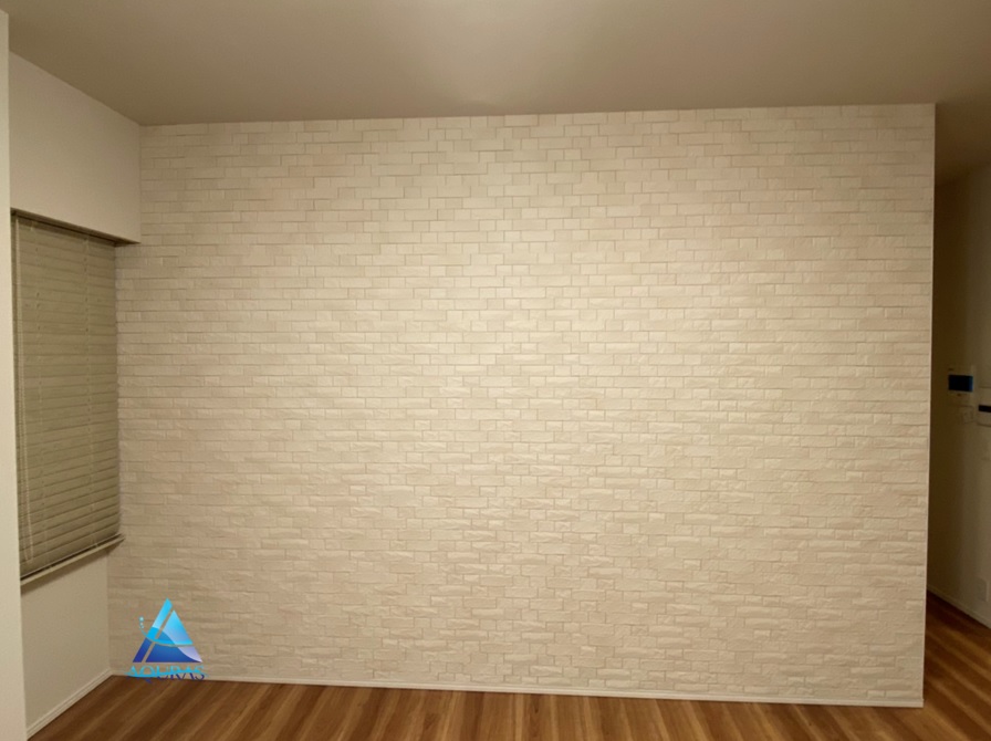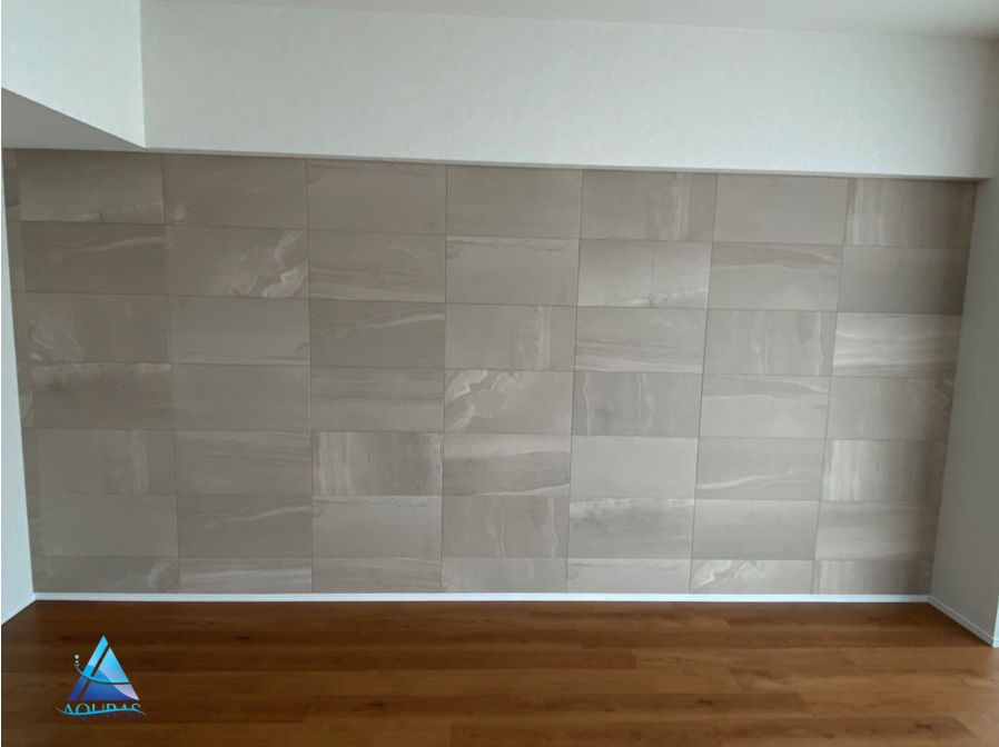 エコカラット リビング【グラナスルドラ】(ダークグレー)両サイドに専用見切り材(シルバー)を使用してのデザイン貼り