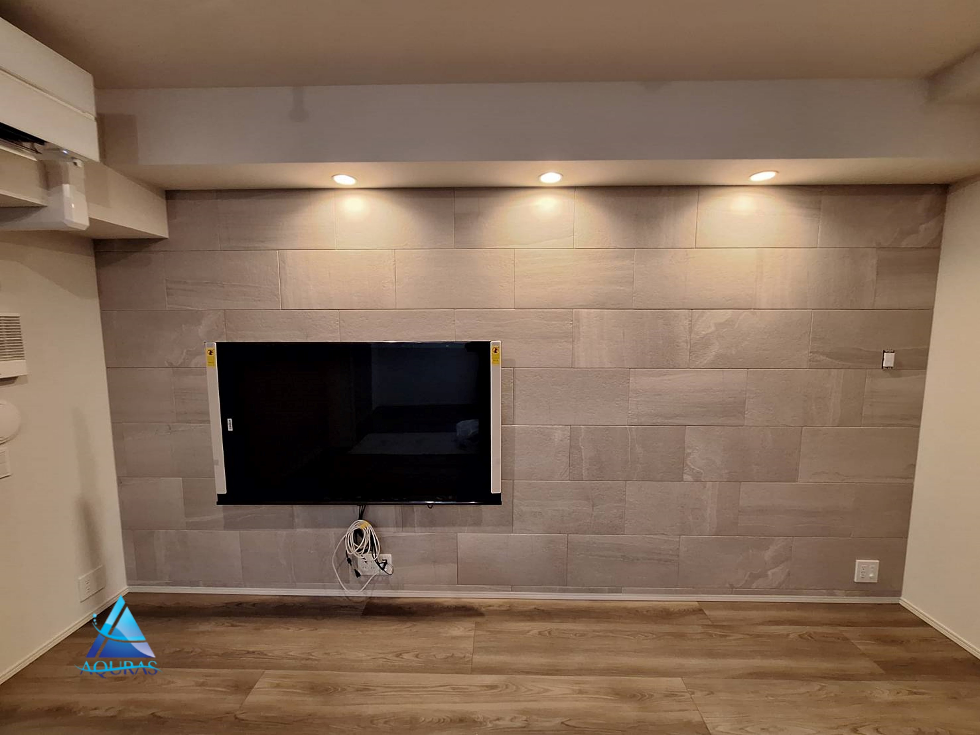 エコカラット リビング【ストーングレース】(グレー)馬貼り+TV壁掛けビルトイン配線工事+ダウンライト増設