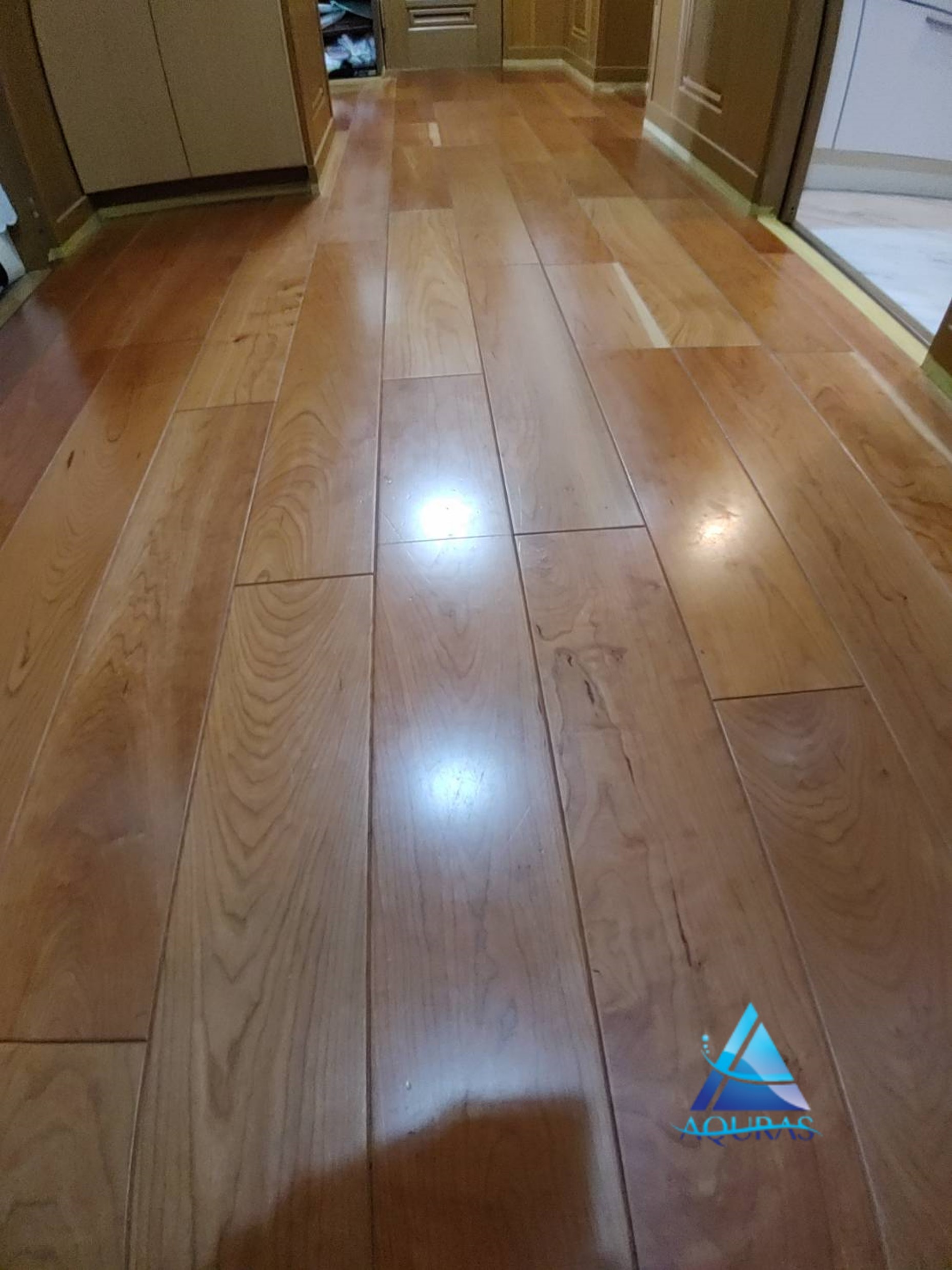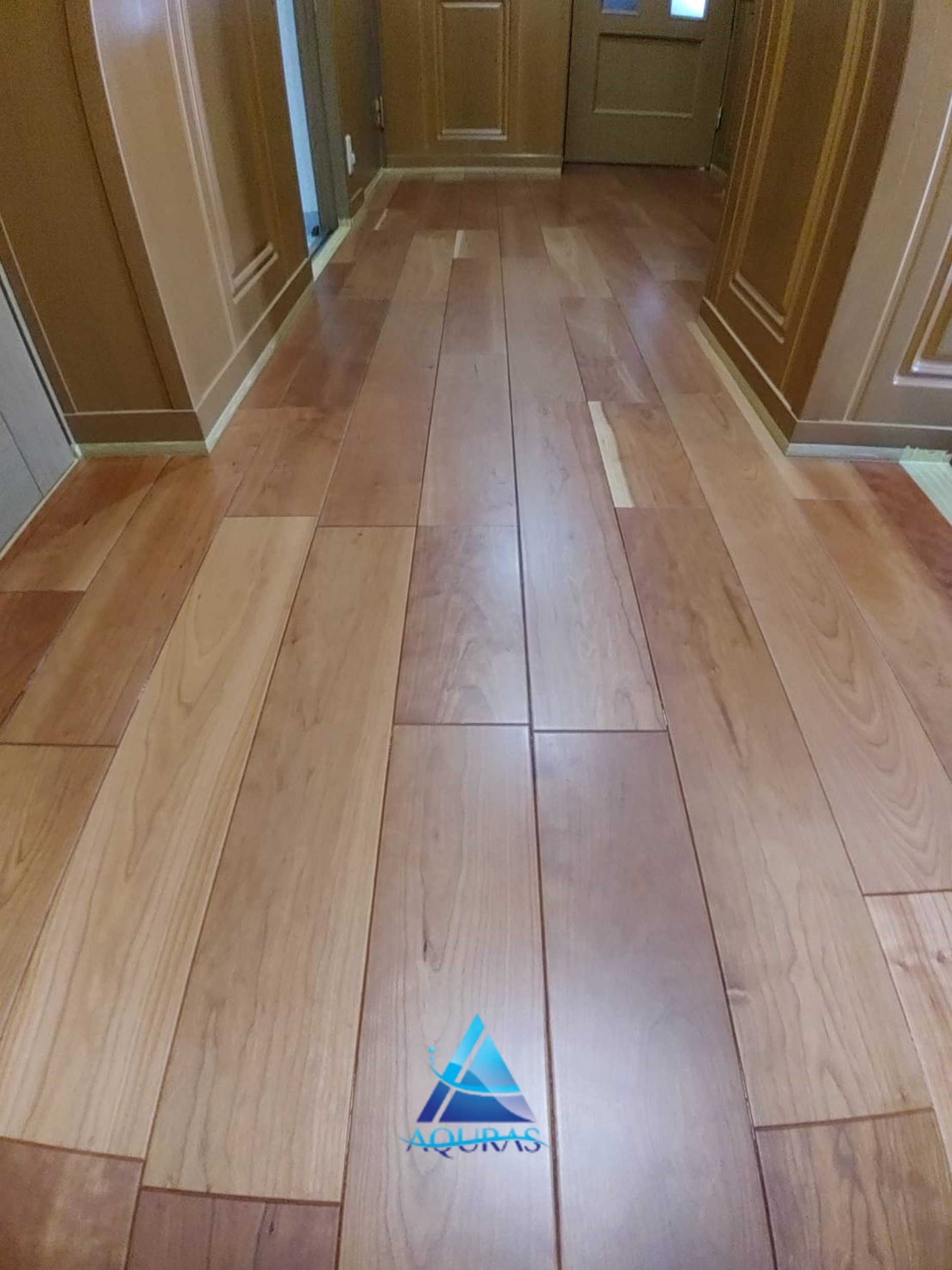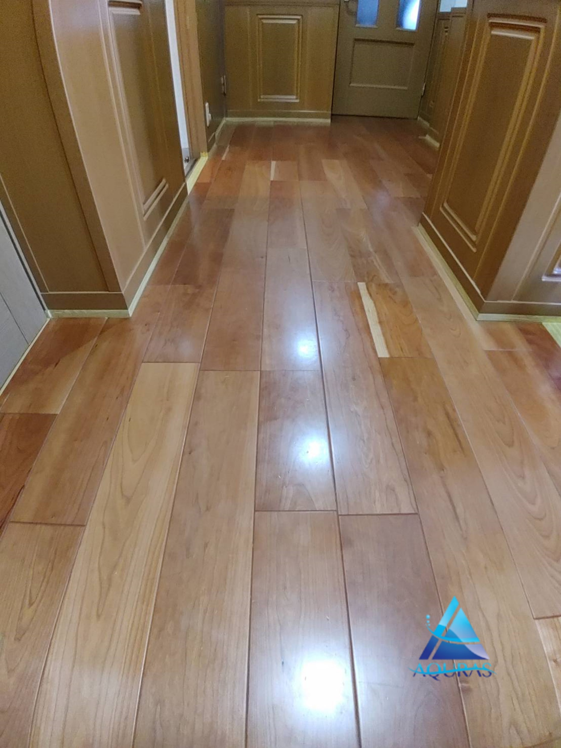 ワックス剥離+UVフロアコーティング施工をさせていただきました。UVコーティングはUV塗料を塗布し、紫外線ライトを照射する事により、数秒で硬化させる工法です。 ピアノの鏡面仕上げ、高級家具などに用いられていた技術をフローリング用に開発し、最高の光沢感を実現できる最高峰のコーティングになります。 熱湯、洗剤、アルコール、ペットの尿などから塗膜の表面や床材を守りますので普段のお手入れは水拭きだけで OK! しっかりグリップするので小さな歩き初めのお子さんやお年寄りの方の安全面も◎です。 ※ご入居済みで、コーティングをあきらめてしまった方や、リフォームをお考えの方にオススメなコーティングです。