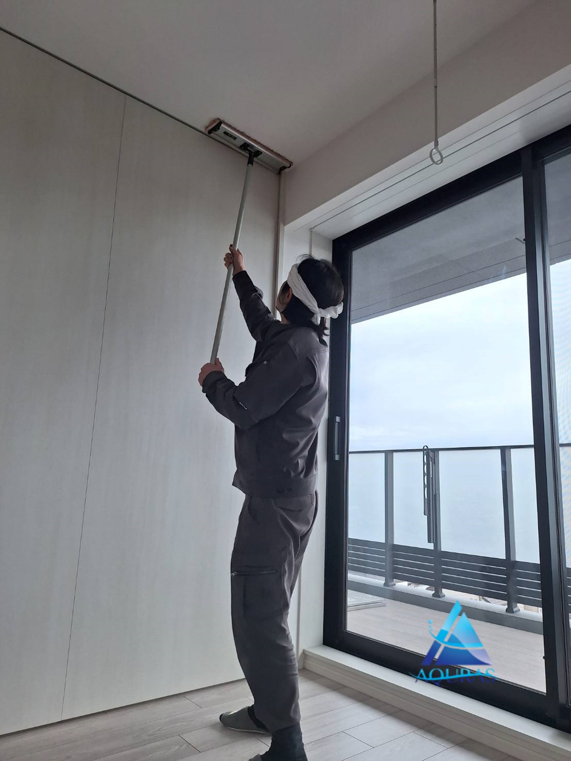 クロスコーティング・水廻りコーティングを施工させていただきました。クロスコーティングは、超微粒子シリコン樹脂でミクロの被膜を形成し、気づかないうちについてしまうスイッチ回りや玄関回りの手垢の汚れや給気口回りの排気ガスなどの黒ずみの汚れ、タバコのヤニやキッチン回りの油煙汚れなどを付きにくくします。 クロスは張り替えればよいと考えがちになってしまいますが、張り替えるにも家具の移動や、現クロスをはがしたりで1日では終わらない事が多いです。手間も掛かり費用も安く御座いません。 超微粒子で形成されたミクロの被膜は、壁の通気を阻害することなく美しさを持続させ、変色すること無くクロスの色艶を長期間保護します。 帯電防止剤入りなのでホコリを寄せ付けません。テレビや冷蔵庫の裏側の静電気によるホコリの付着を防ぎクロスを黒ズミ汚れから守ります。 また、日焼け防止効果もありますので、日焼けによる色あせや変色を防ぎます。 長期間綺麗が持続し、コーティング後のお手入れがとても簡単になります。