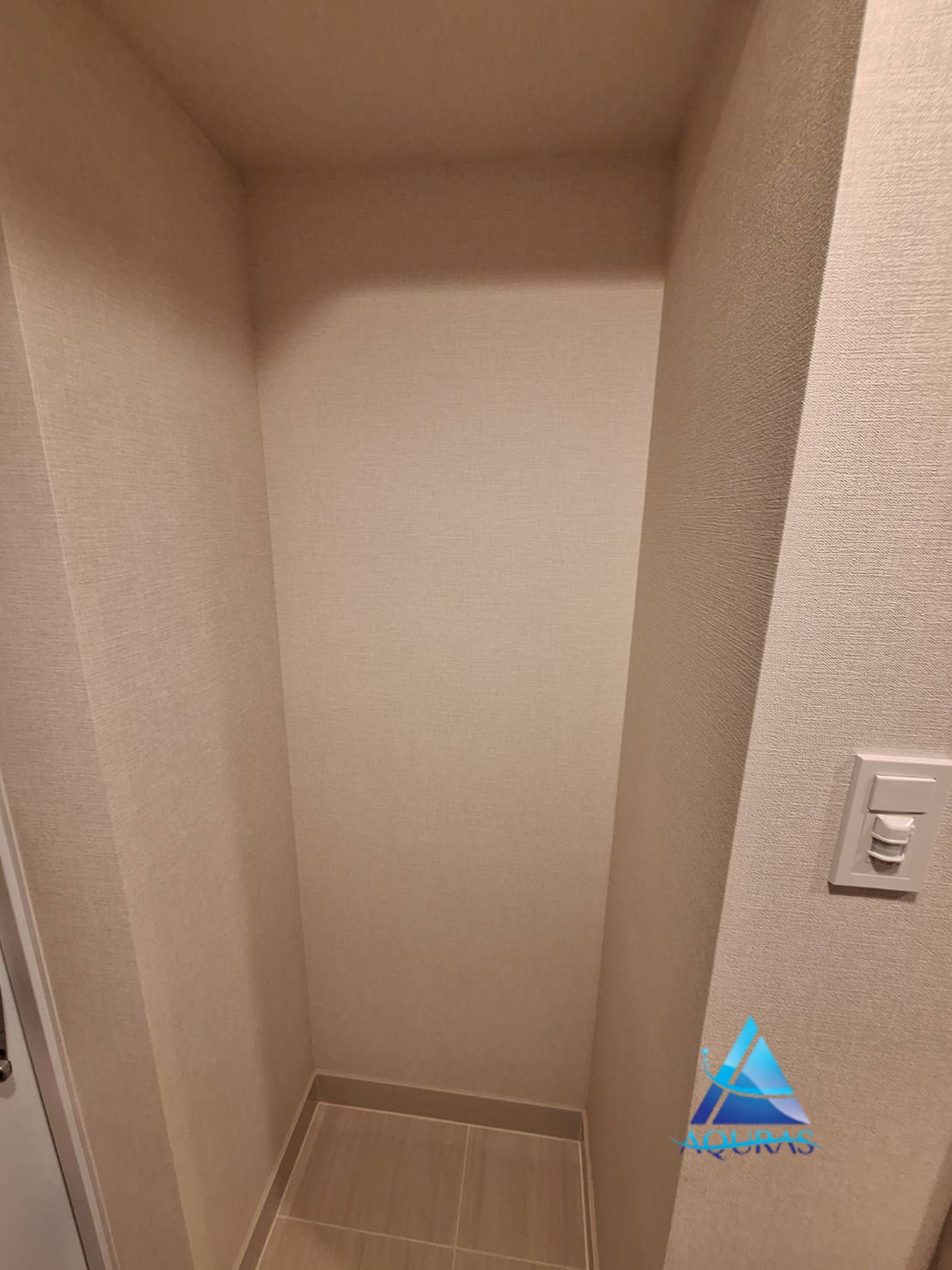 玄関にエコカラット【ペトラスクエア】(ベージュ)を施工させていただきました。【ペトラスクエア】はナチュラルな石面凹凸デザイン。ライティングによる陰影が美しい壁面を演出します。