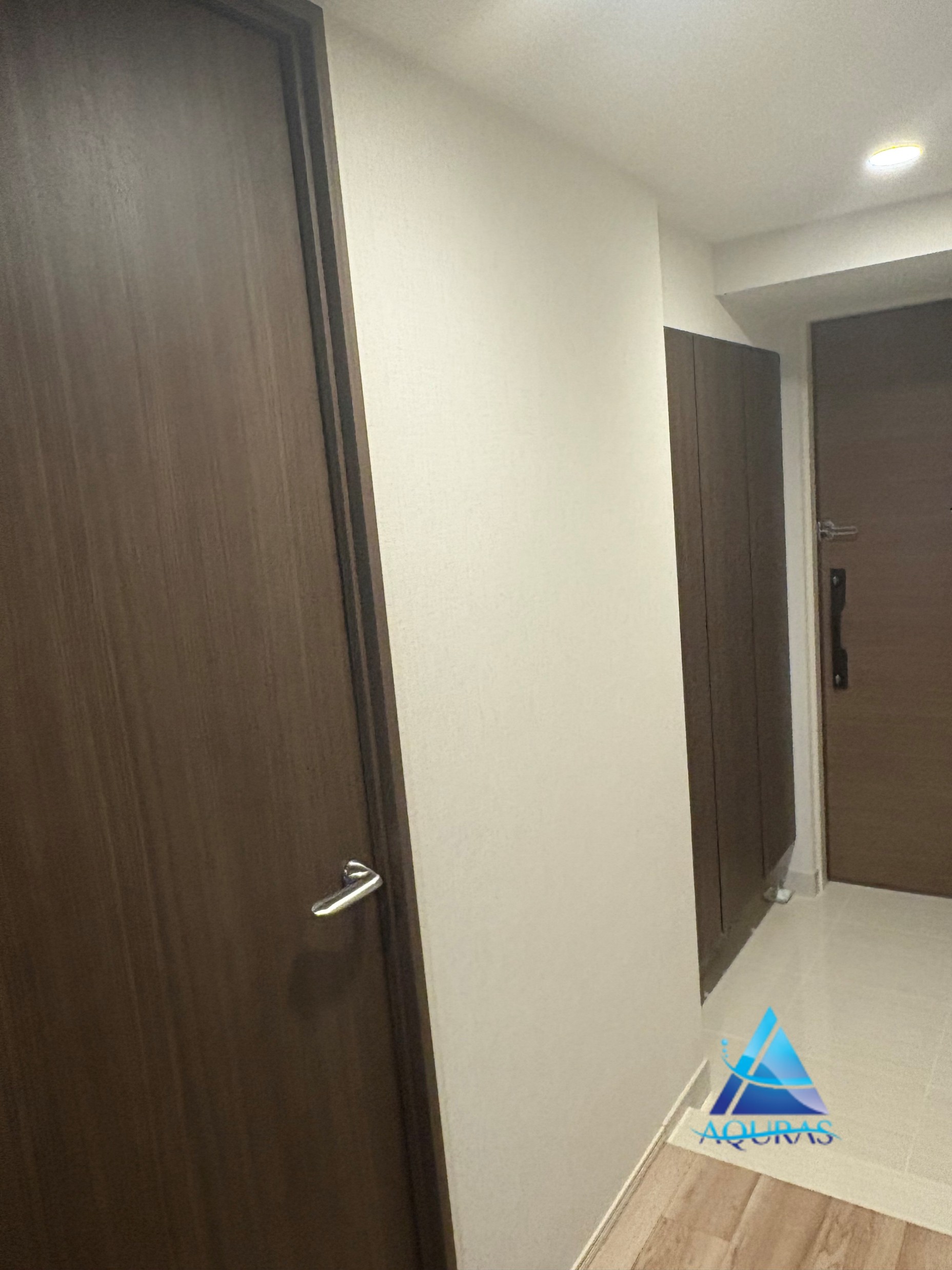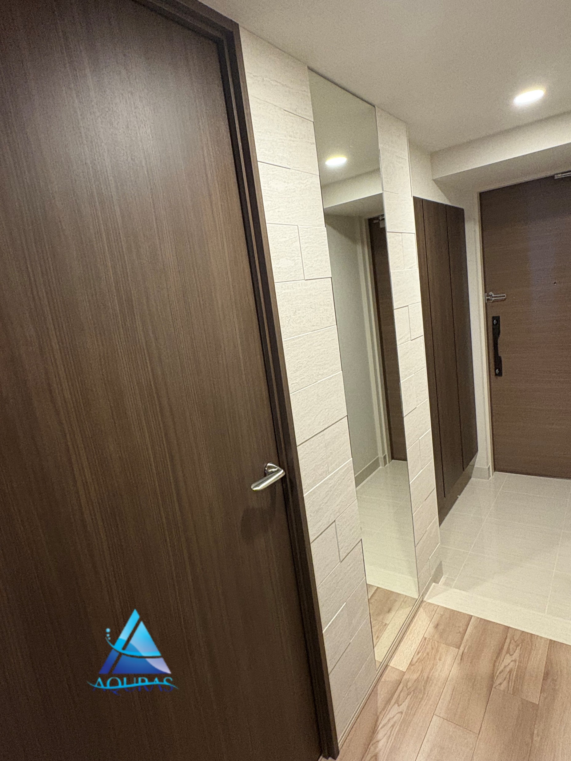 玄関にエコカラット【ヴァルスロック】(ホワイト)+ミラー幅45cmを施工させていただきました。【ヴァルスロック】はスイスのヴァルス地方で採掘される石材の意匠を使いやすくアレンジしたデザインです。