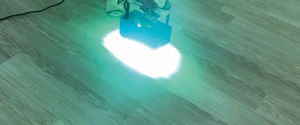 UVコーティングはUV塗料を塗布し、紫外線ライトを照射する事により、数秒で硬化させる工法です。