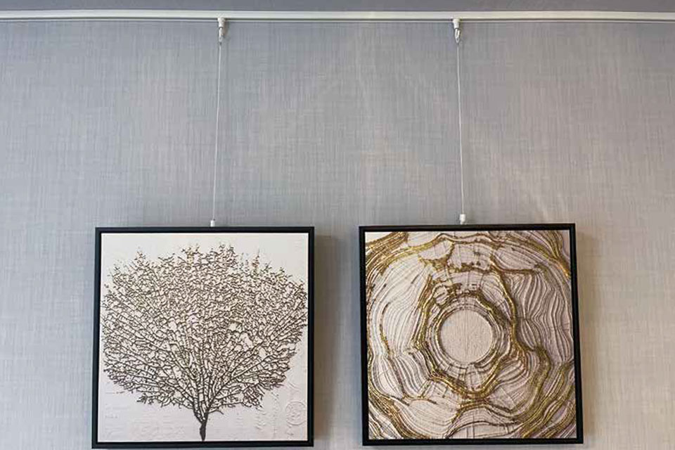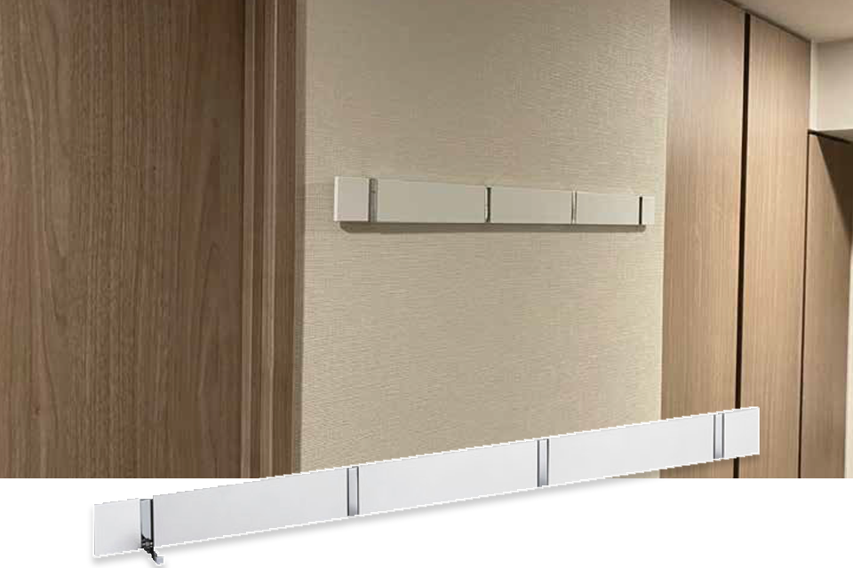 壁にワイヤーフックで絵や写真などを飾るためのレールです。飾るもの次第でお部屋のインテリアがワンランクアップ。壁にあまり穴あけたくない方にもオススメです。