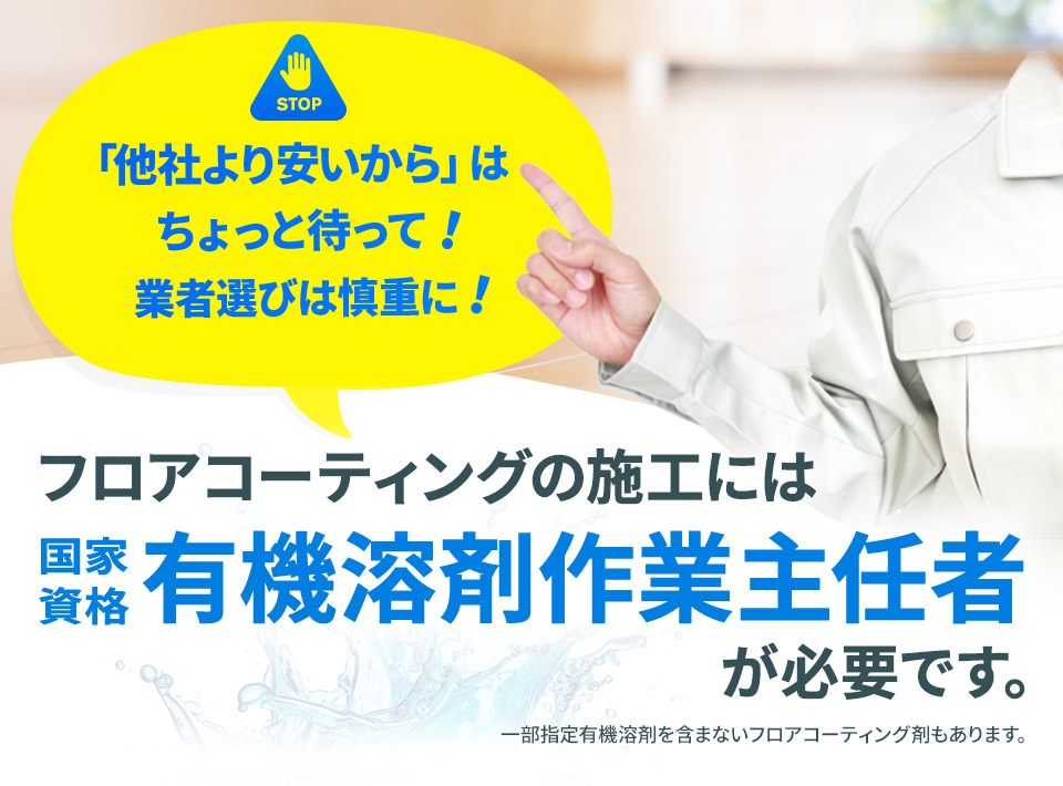 フロアコーティングの施工には有機溶剤作業主任者が必要です