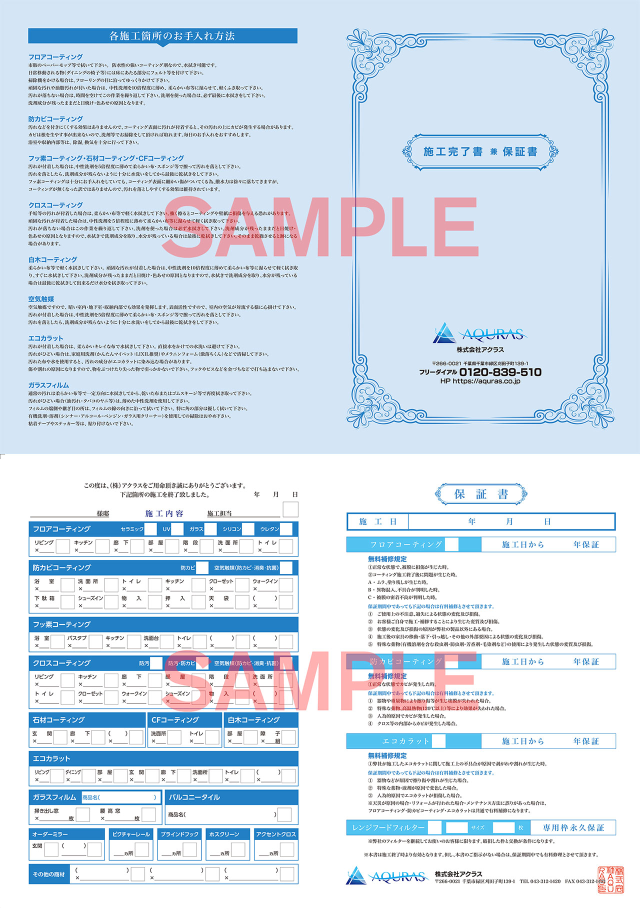 施工完了の際には「施工完了書 兼 保証書」もお渡ししております。
