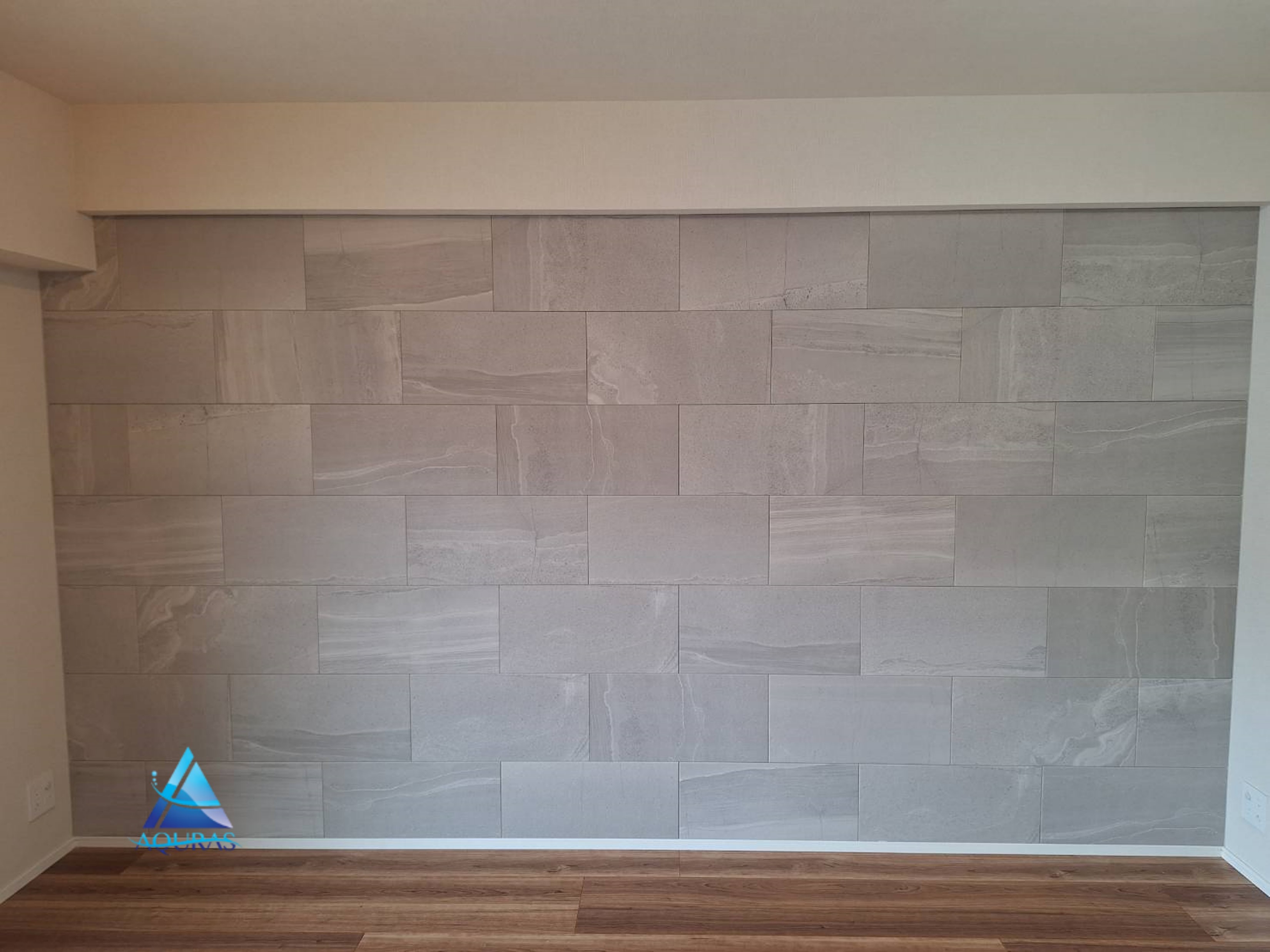 エコカラット リビング【ストーングレース】(グレー)馬貼り 玄関【ペトラスクエア】(ライトグレー)+ミラー幅45cm