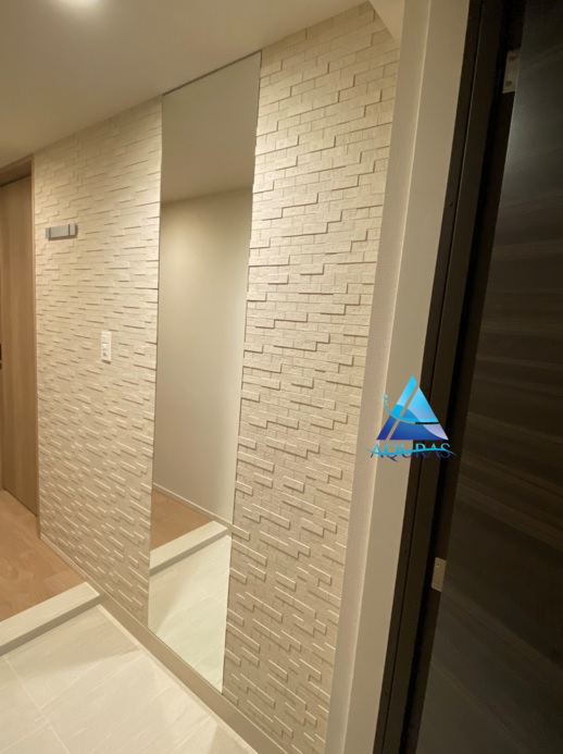玄関 【ランド土もの調】(アイボリー)+ミラー幅45cm