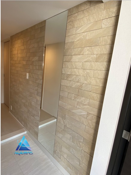 埼玉県草加市 ソライエテラス・イースト K様エコカラット 玄関【ラフクォーツ】(ベージュ)+ミラー幅45cm