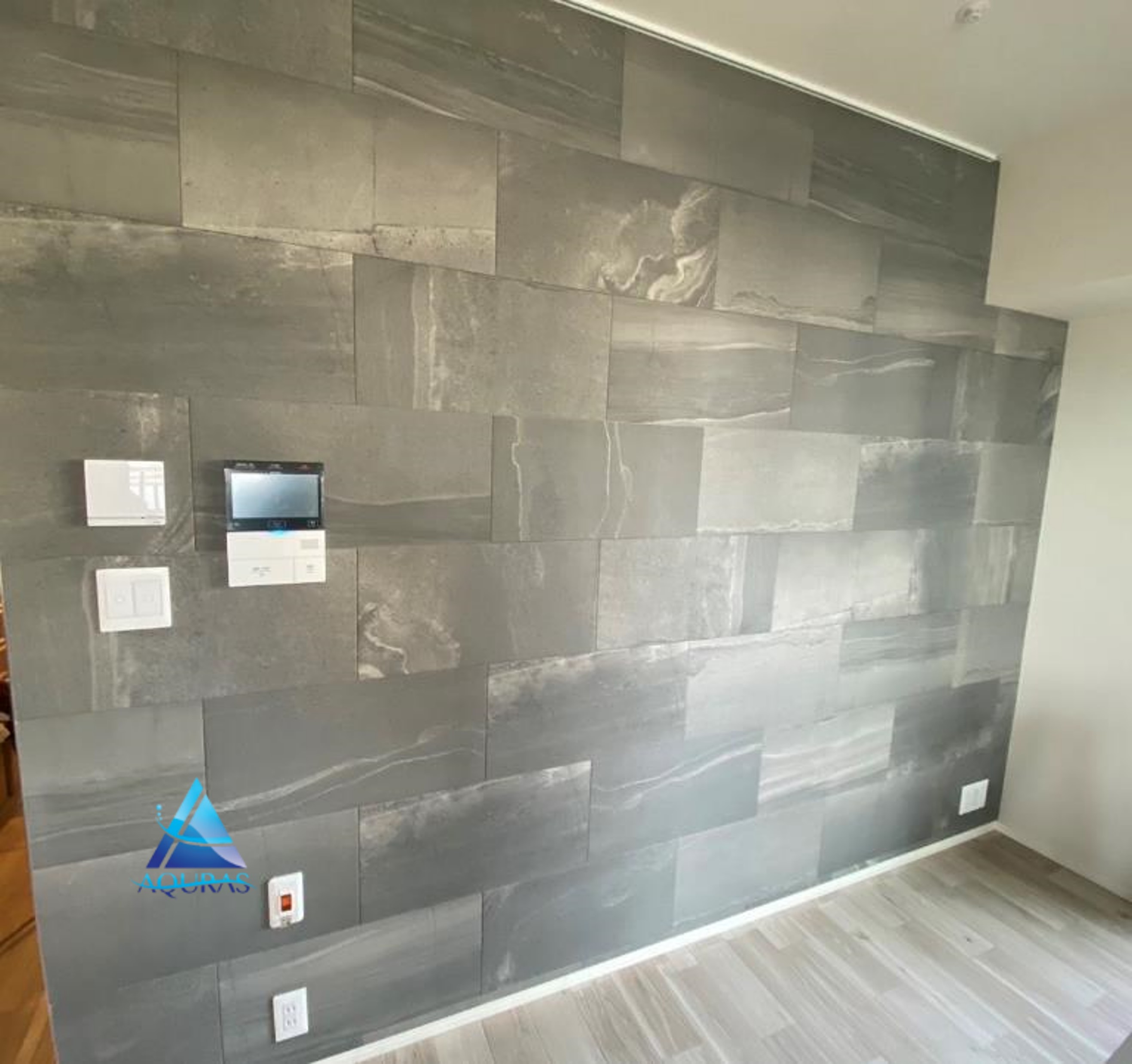 エコカラット リビング【ストーングレース】(ダークグレー)馬貼り 玄関【ルドラNX】(ダークグレー)+ミラー幅45cm