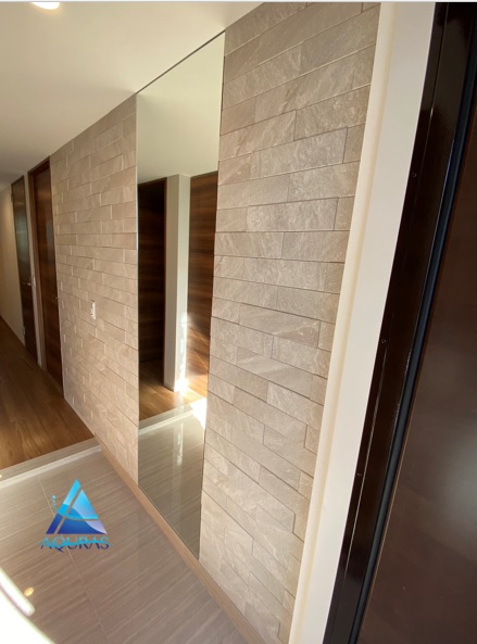 エコカラット 玄関 【ラフクォーツ】(ライトグレー)+ミラー幅60cm