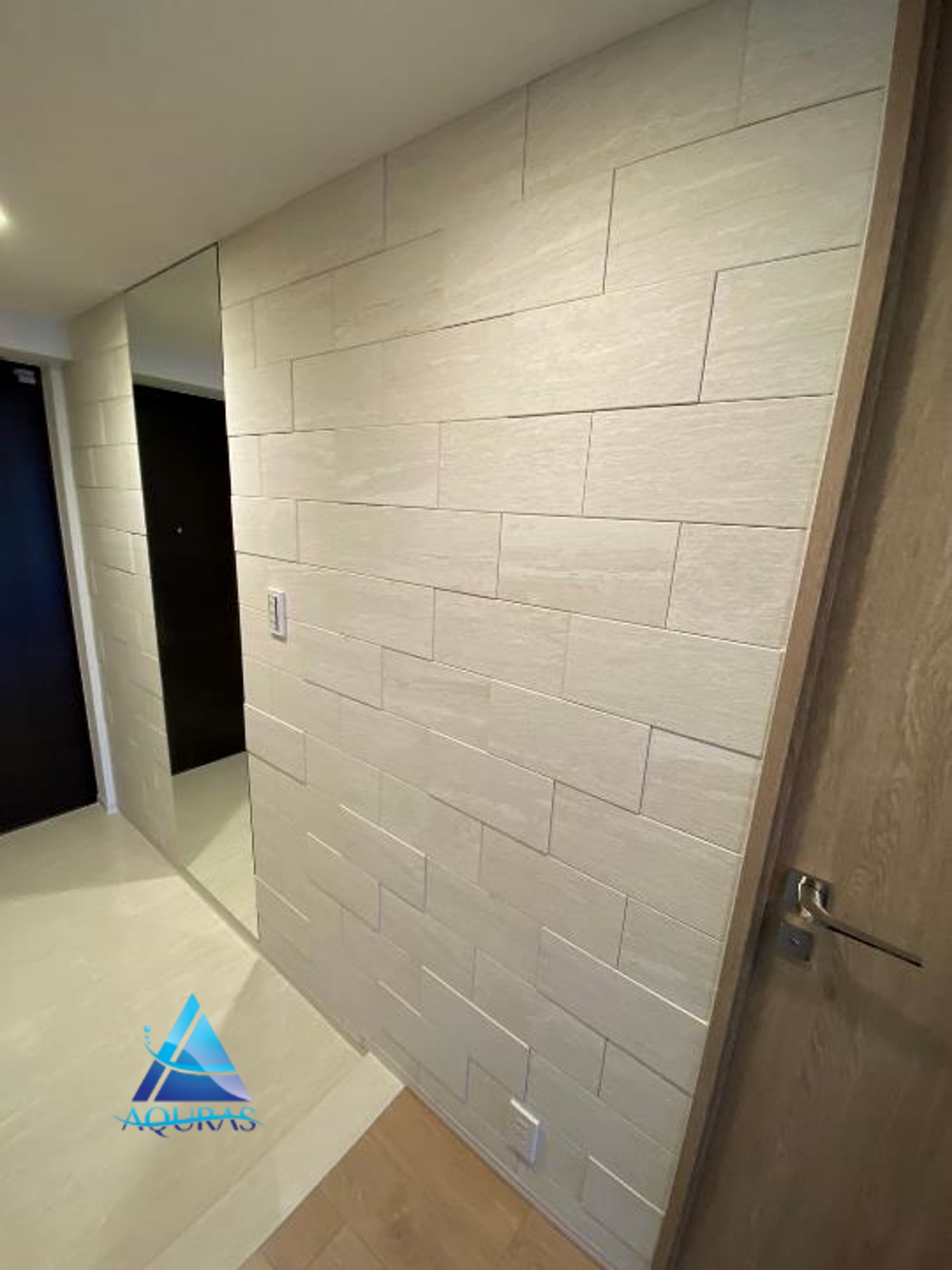 エコカラット リビング 【ストーンⅡ】(ベージュ) 玄関【ランド土もの調】(アイボリー) 玄関ミラー幅45cm ・河淳ブラインドフック4連(ホワイト)