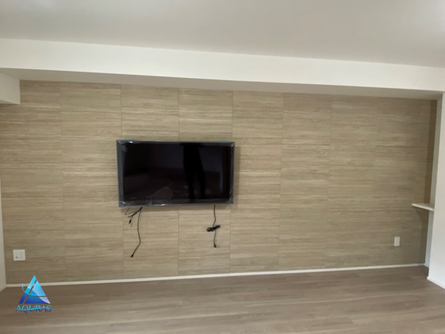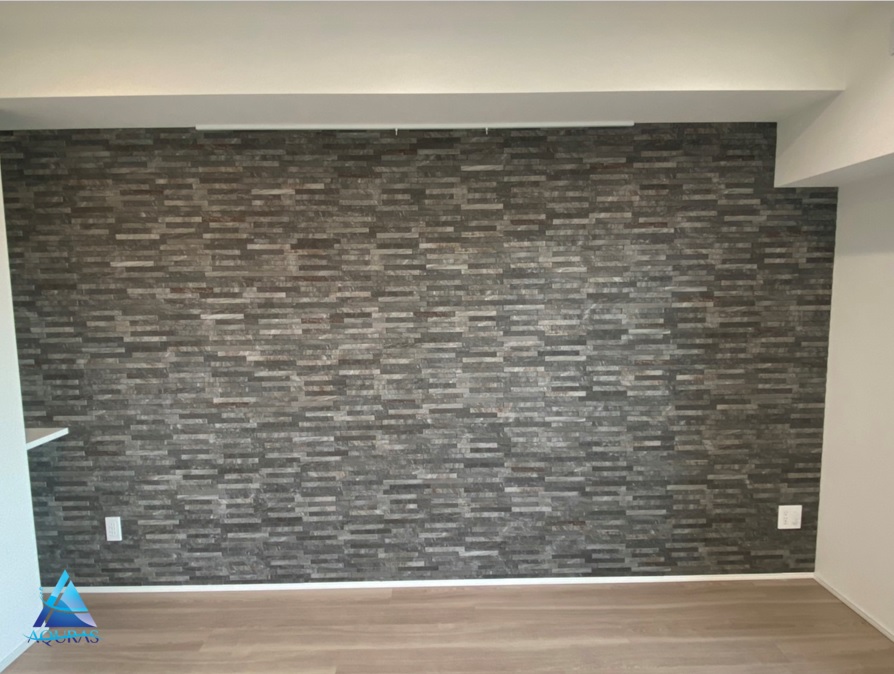 エコカラット リビング【ネオトラバーチン】(ベージュ)+TV壁掛けビルトイン配線工事 玄関【ヴァルスロック】(ホワイト)+ミラー幅60cm