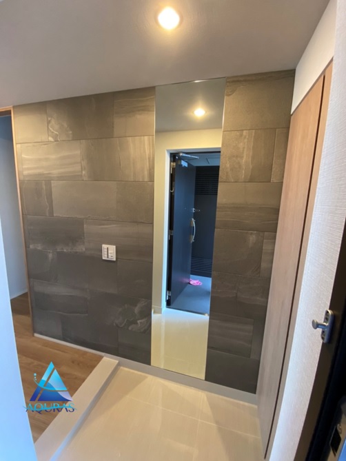 エコカラット 玄関【ストーングレース】(ダークグレー)馬貼り+ミラー幅45cm