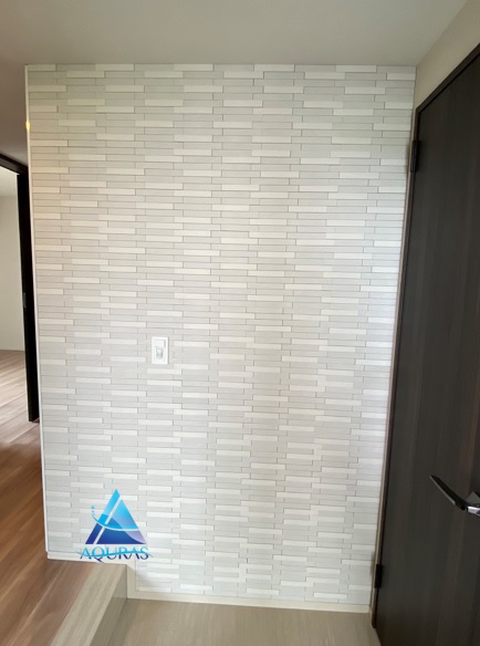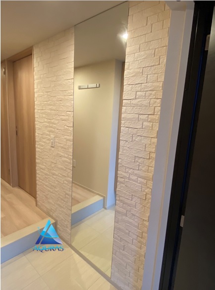 エコカラット リビング【ストーングレース】(ベージュ)馬貼り 玄関【グラナスヴィスト】(ホワイト)+ミラー幅60cm