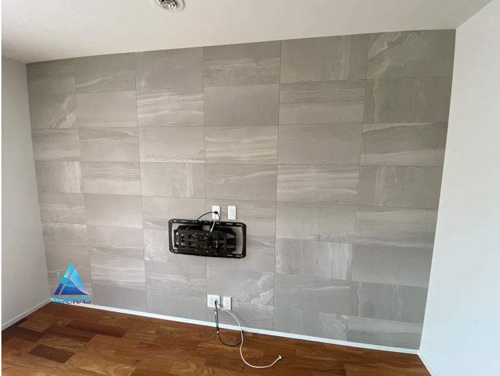 エコカラット リビング【ストーングレース】(グレー)芋貼り+テレビ壁掛け金具設置+ビルトイン配線工事