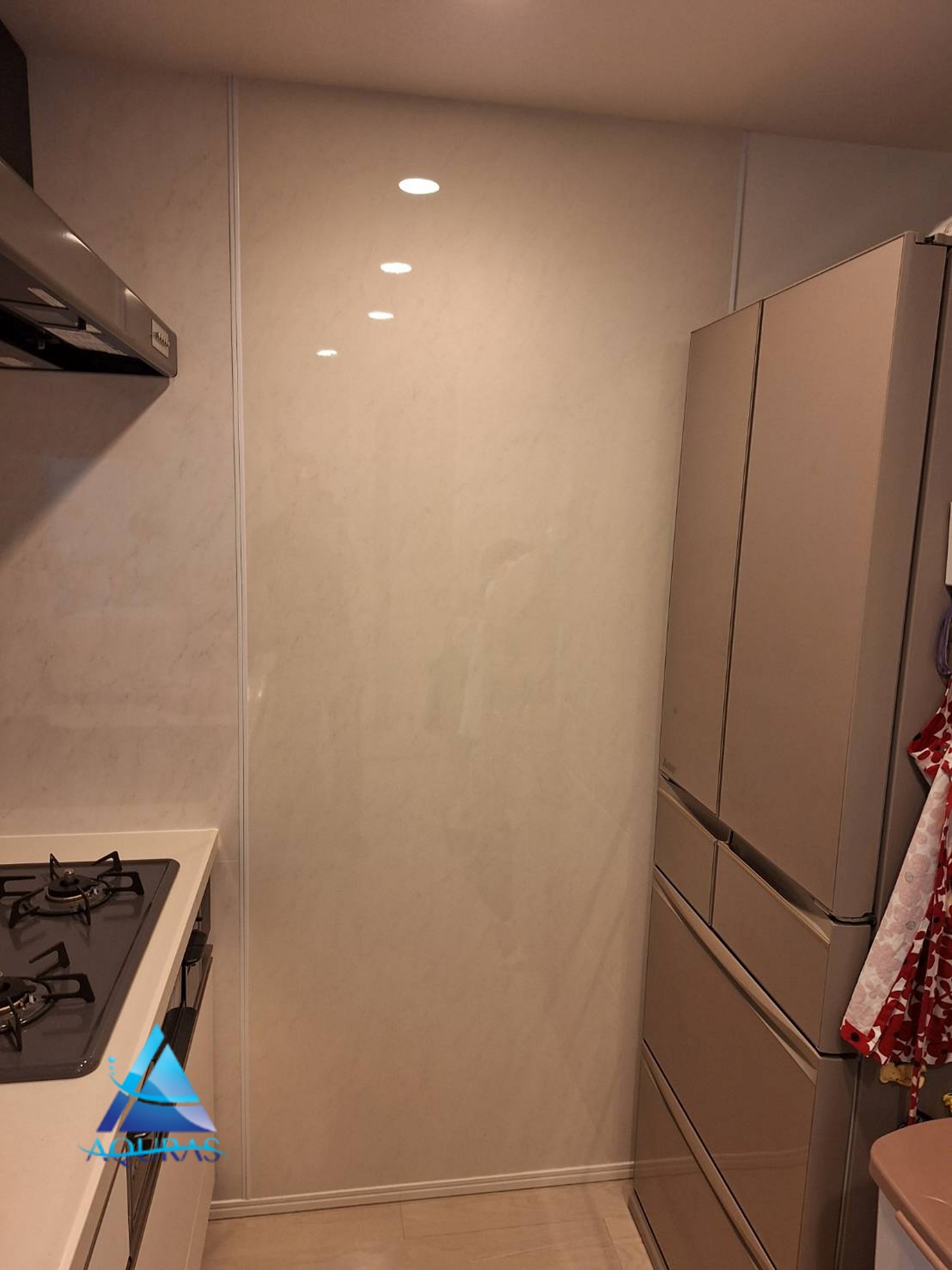 アイカキッチンパネル設置 洗濯機上可動棚設置(ハンガーパイプ付き)