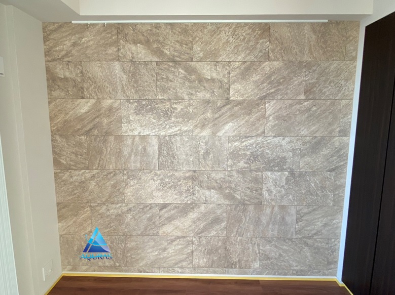 エコカラット リビング【ストーングレース】(チャコール)+TV壁掛けビルトイン配線工事・スピーカー設置・ローボード設置