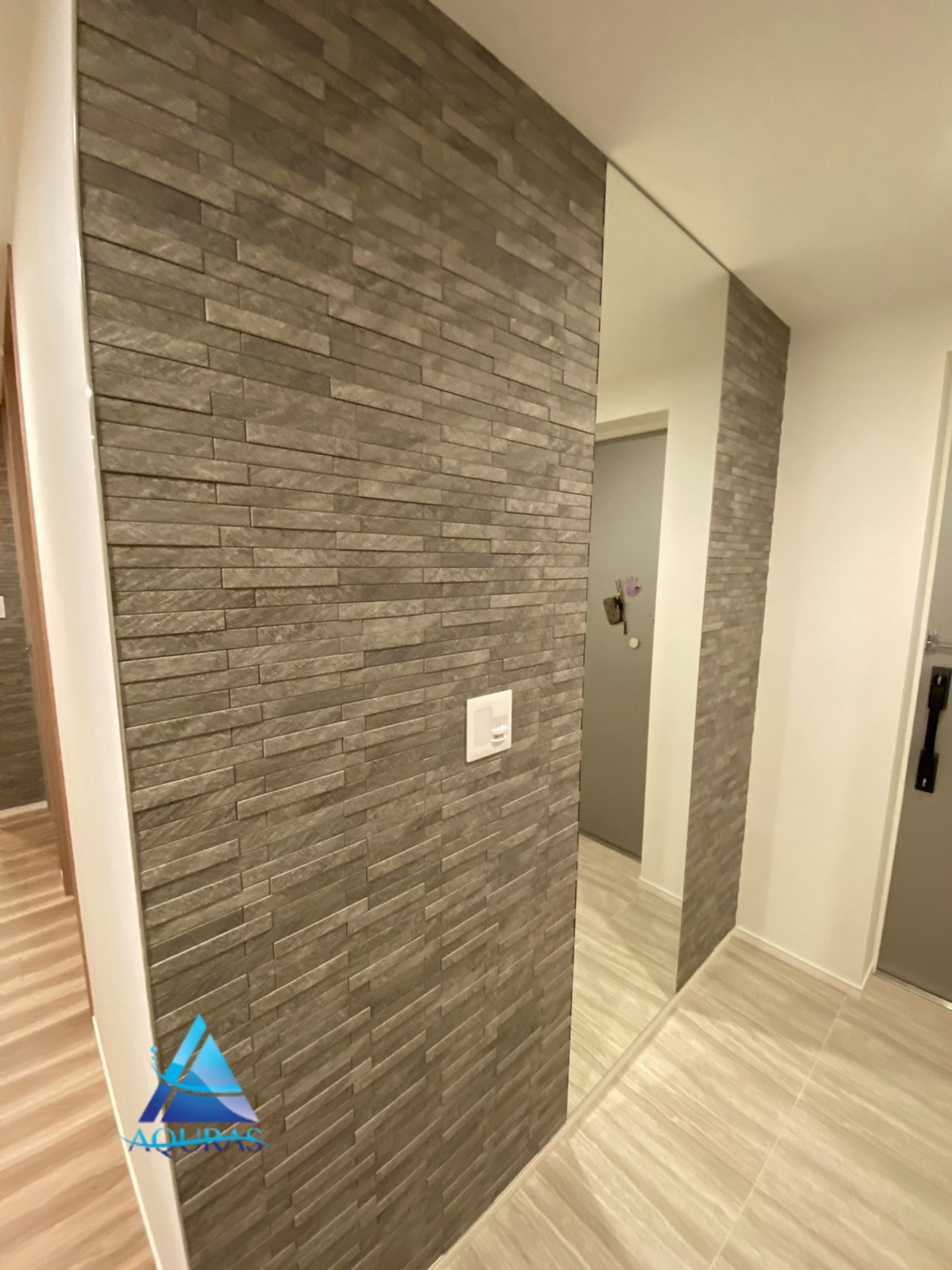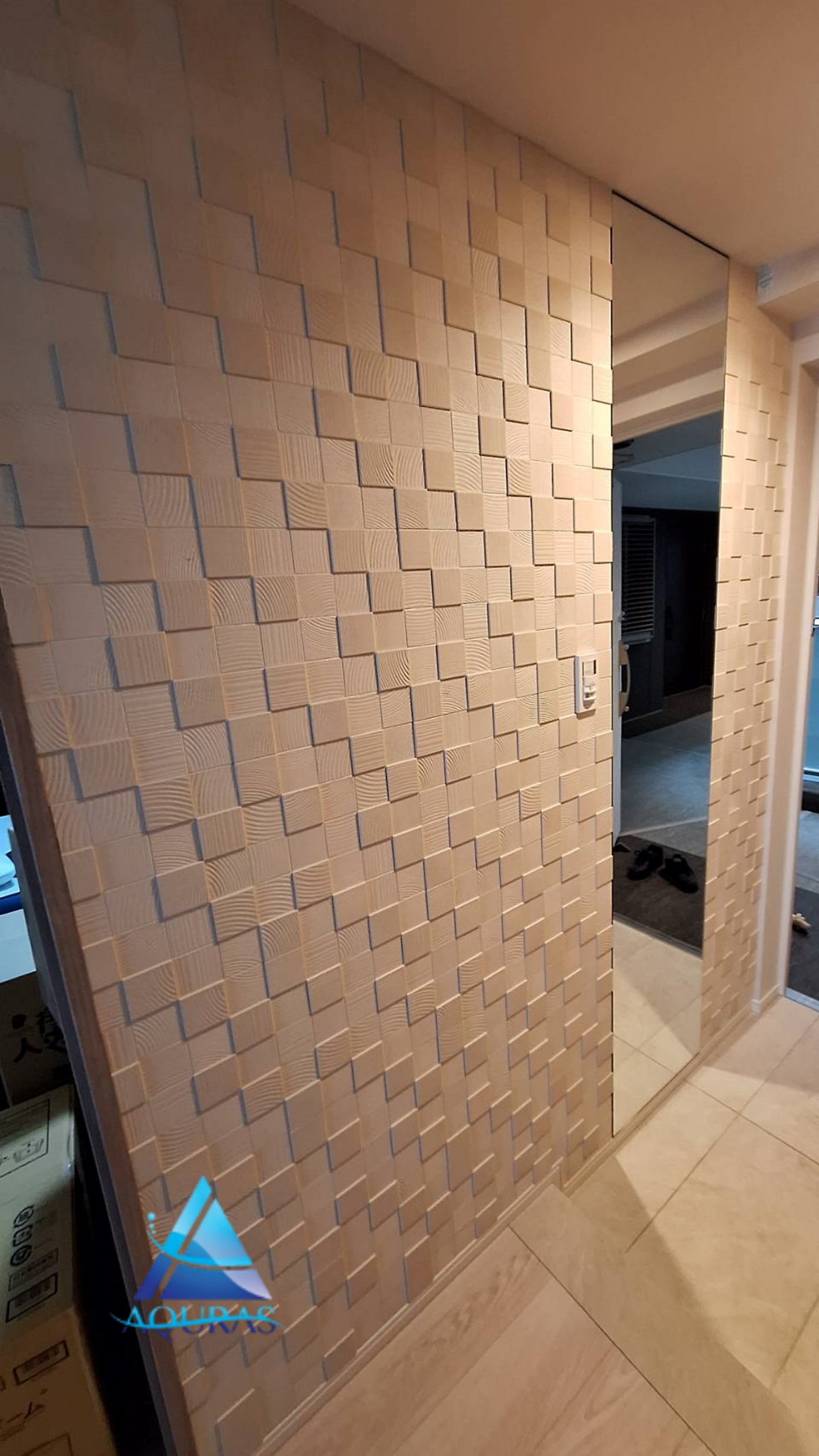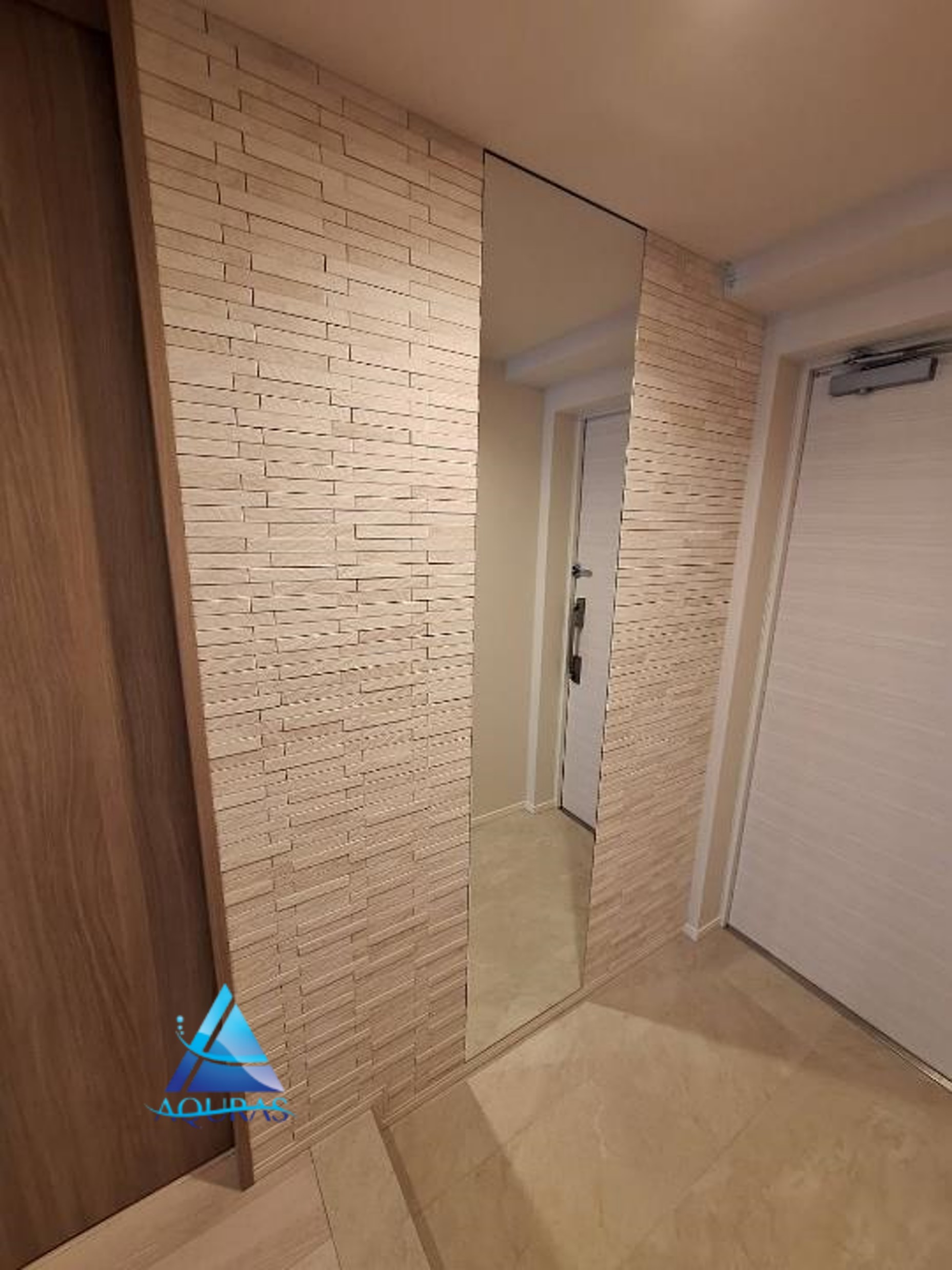 エコカラット 玄関【ラフクォーツ】(ライトグレー)+ミラー幅45cm