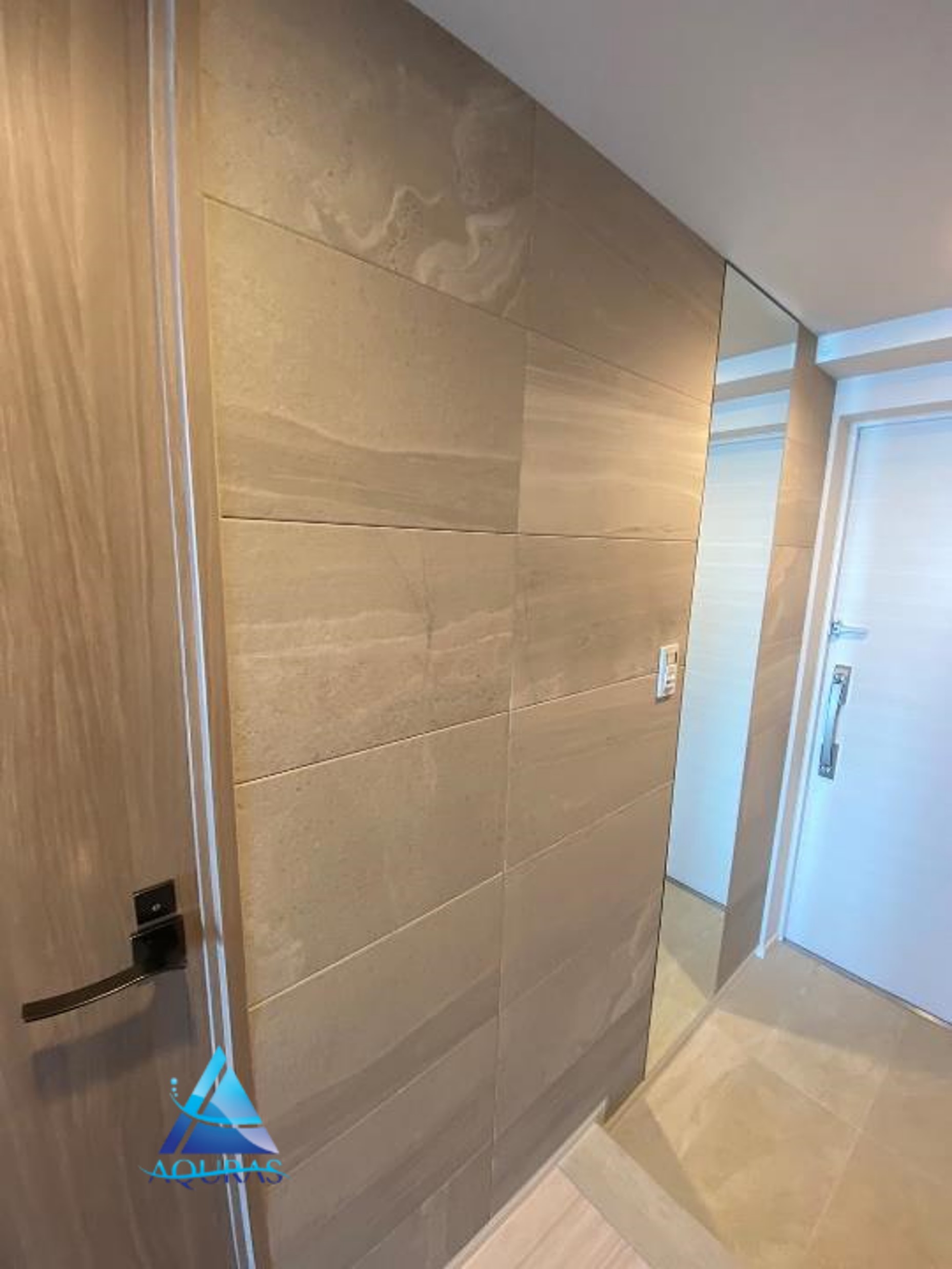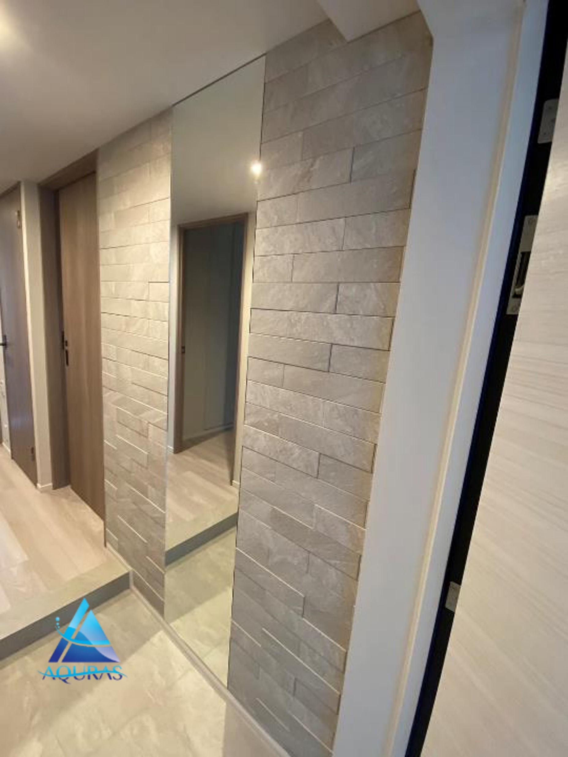 エコカラット 玄関【ラフクォーツ】(ライトグレー)+ミラー幅45cm
