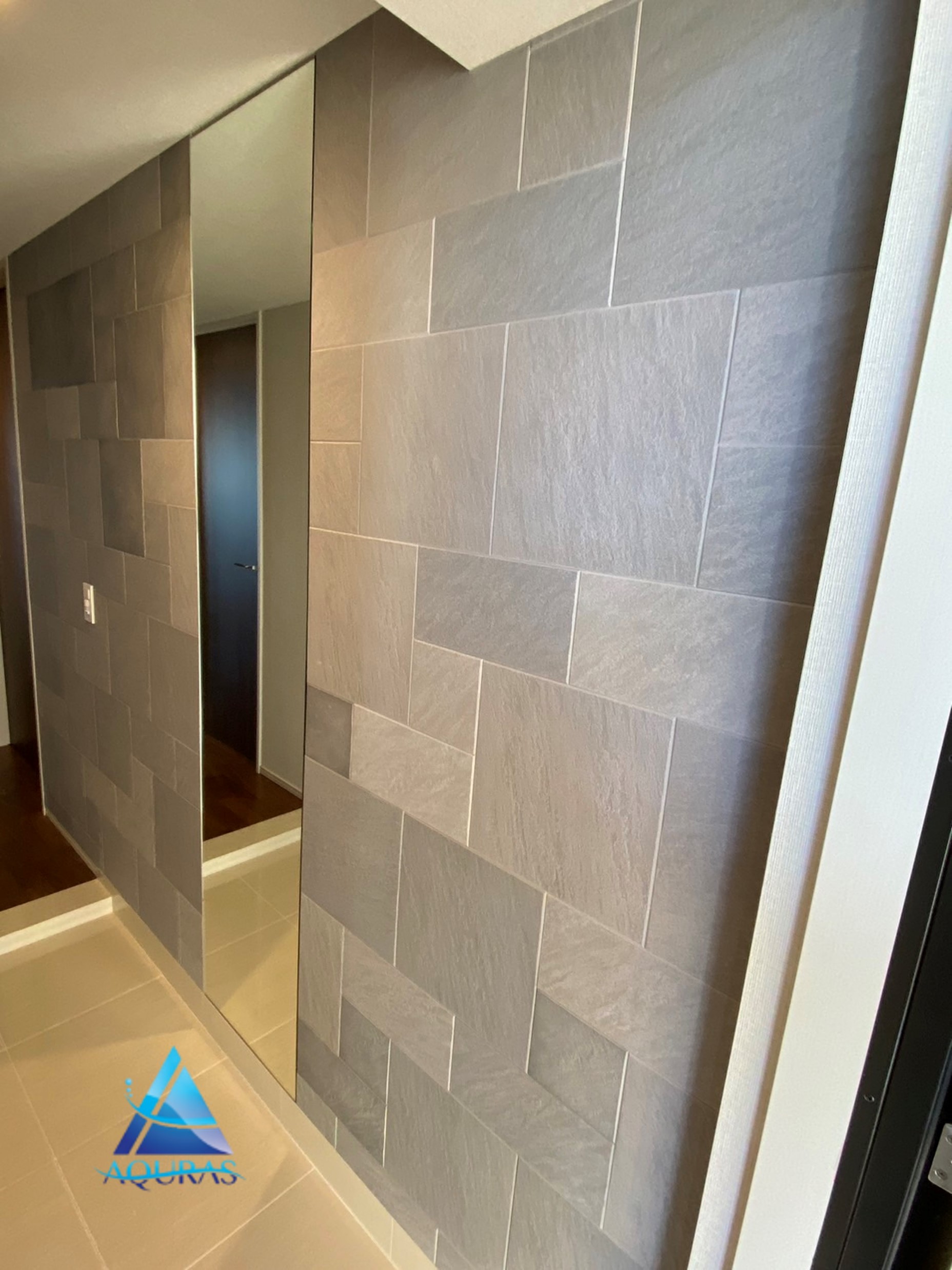 エコカラット 玄関【ストーングレース】(ダークグレー)芋貼り+ミラー幅45cm