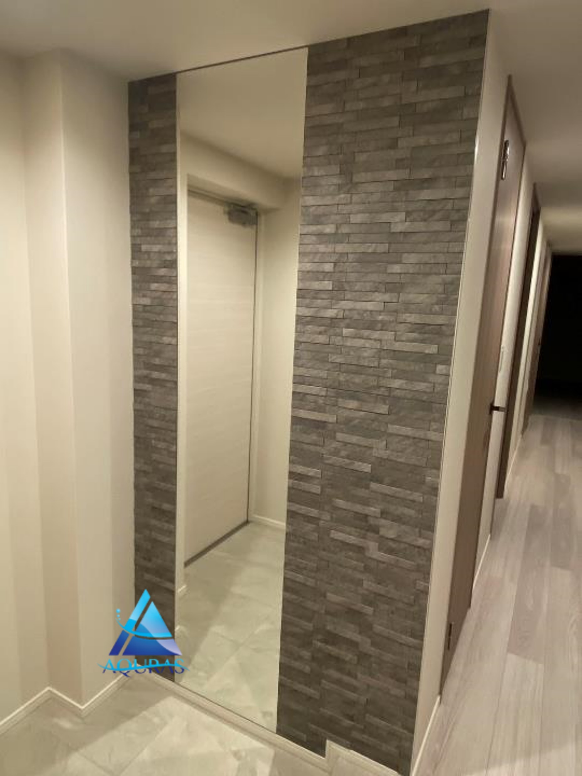 エコカラット 玄関 【 陶連子(とうれんじ)】(香色)+ミラー幅30cm+10cm デザイン貼り