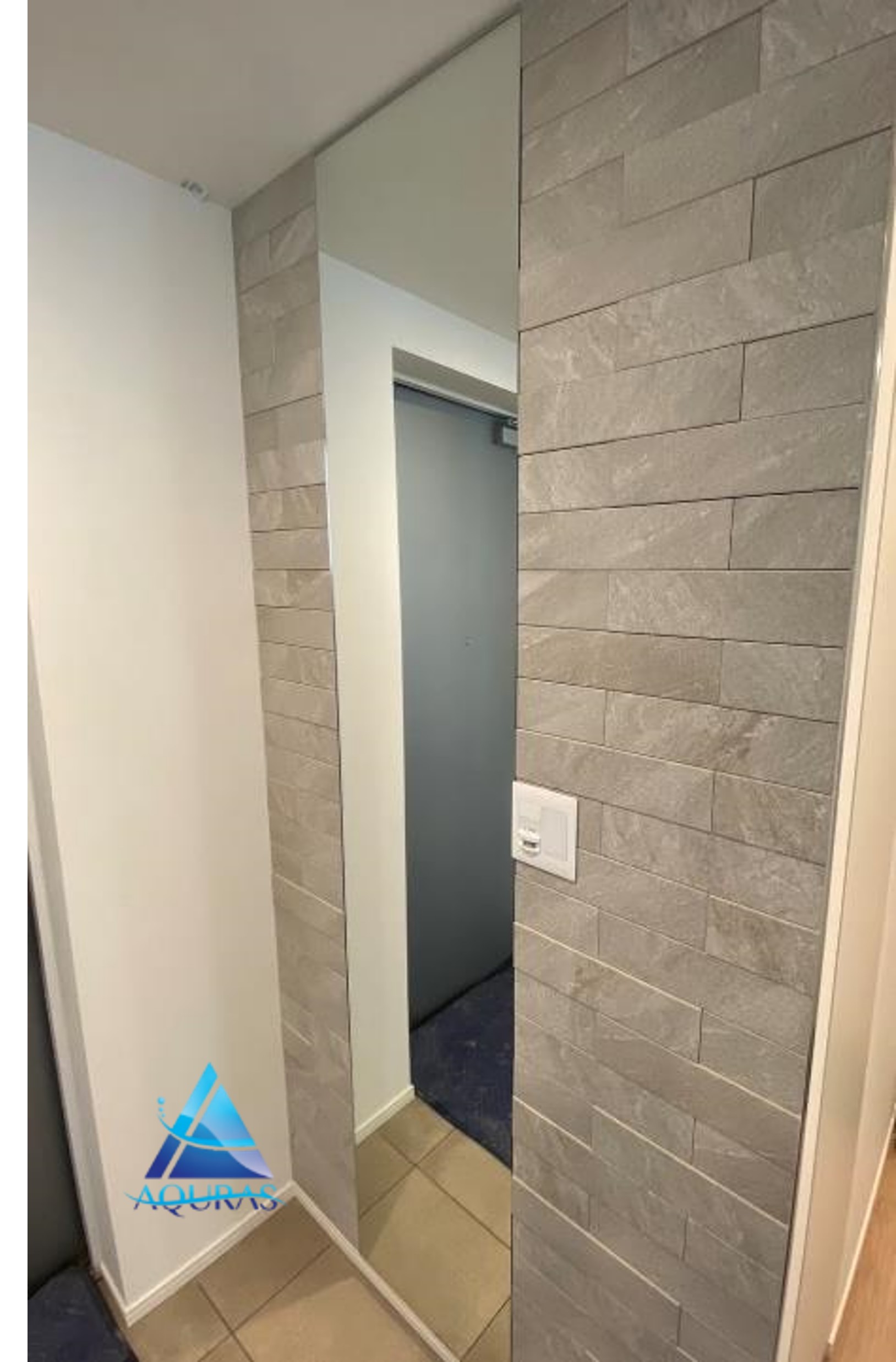 エコカラット 玄関【ラフクォーツ】(ライトグレー)+ミラー幅45cm