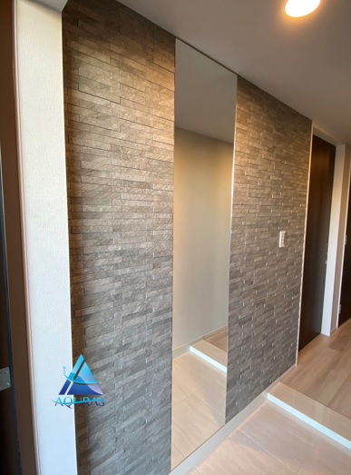 エコカラット 玄関【ネオトラバーチン】(ベージュ)+ミラー幅45cm