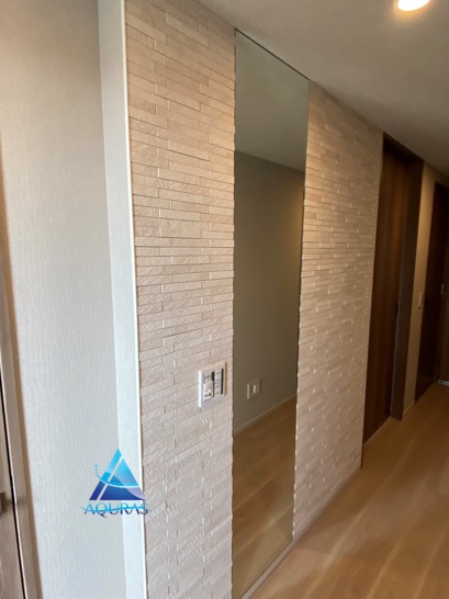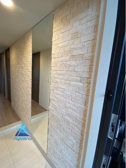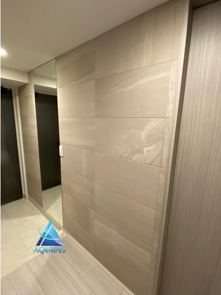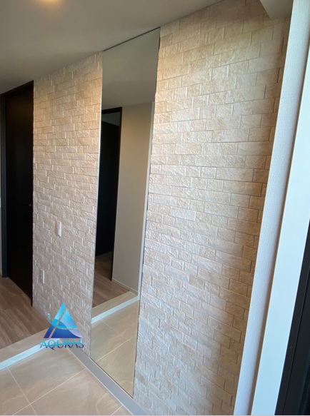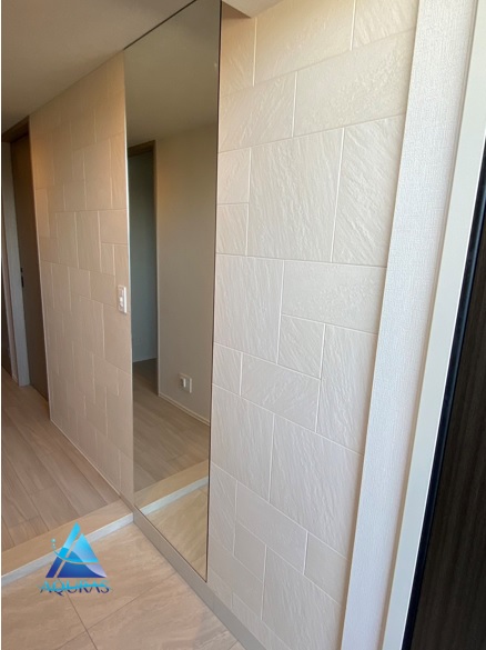 エコカラット 玄関【ストーングレース】(ベージュ)目地通し貼り+ミラー幅60cm