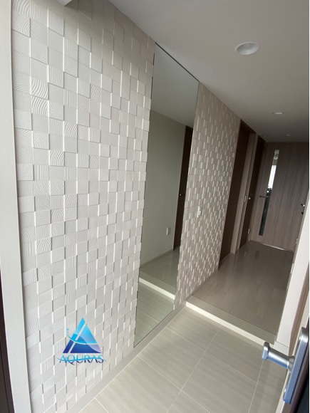 エコカラット 玄関【和細工】(素色)+ミラー幅45cm