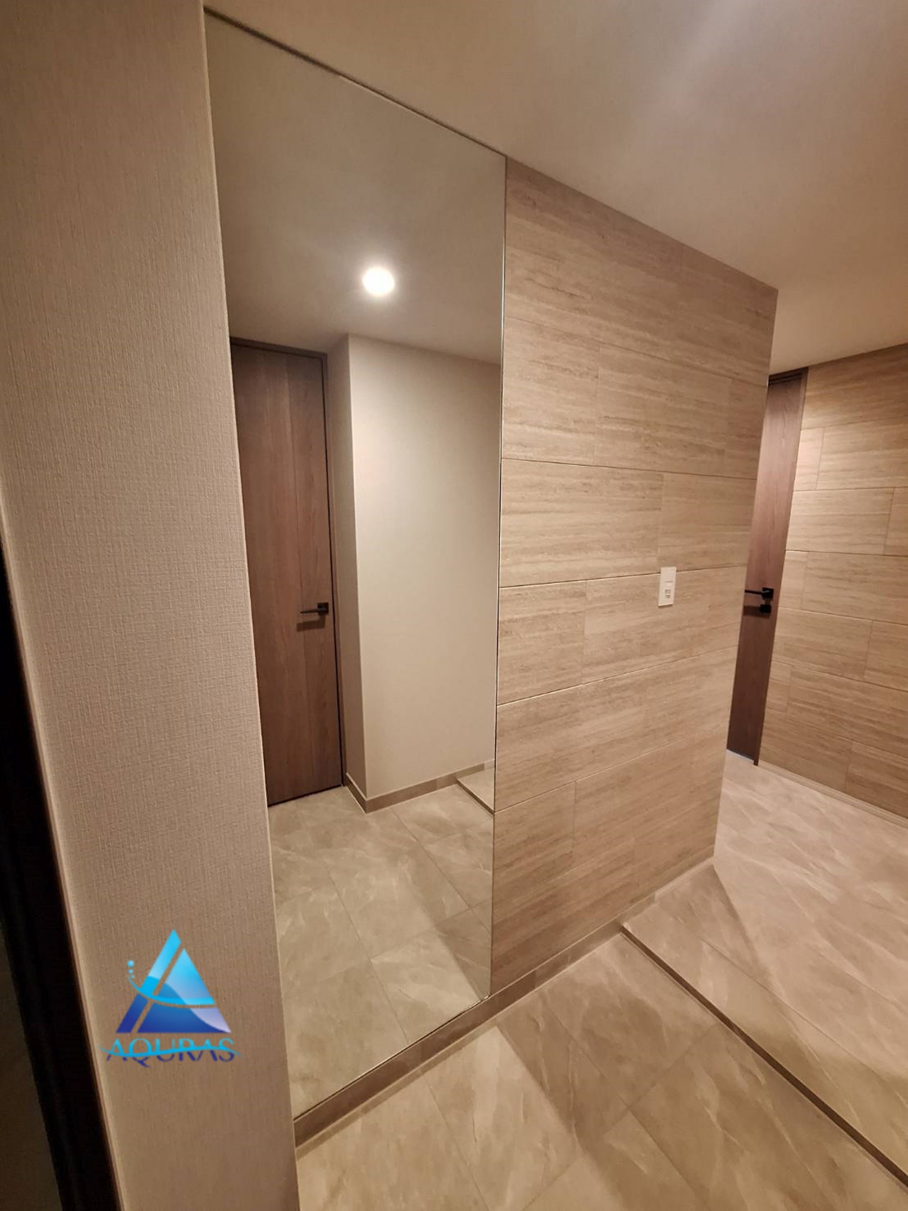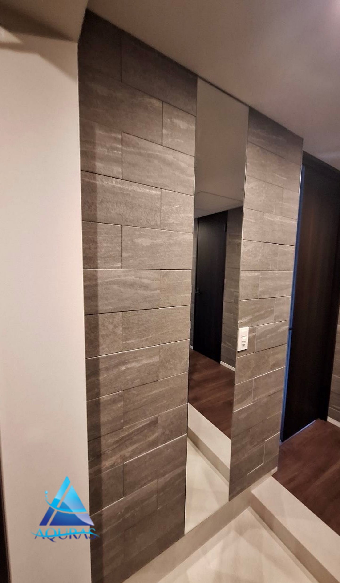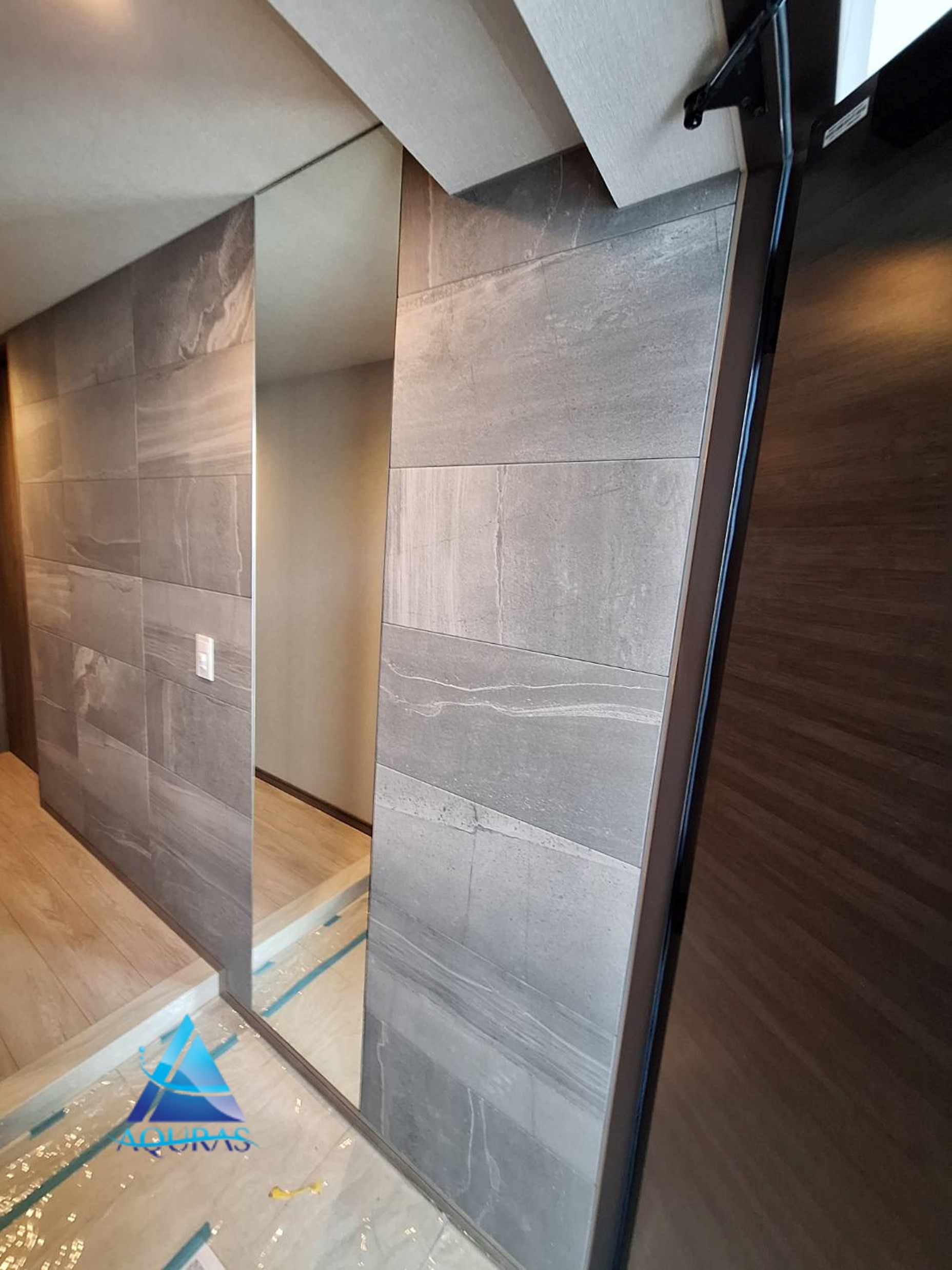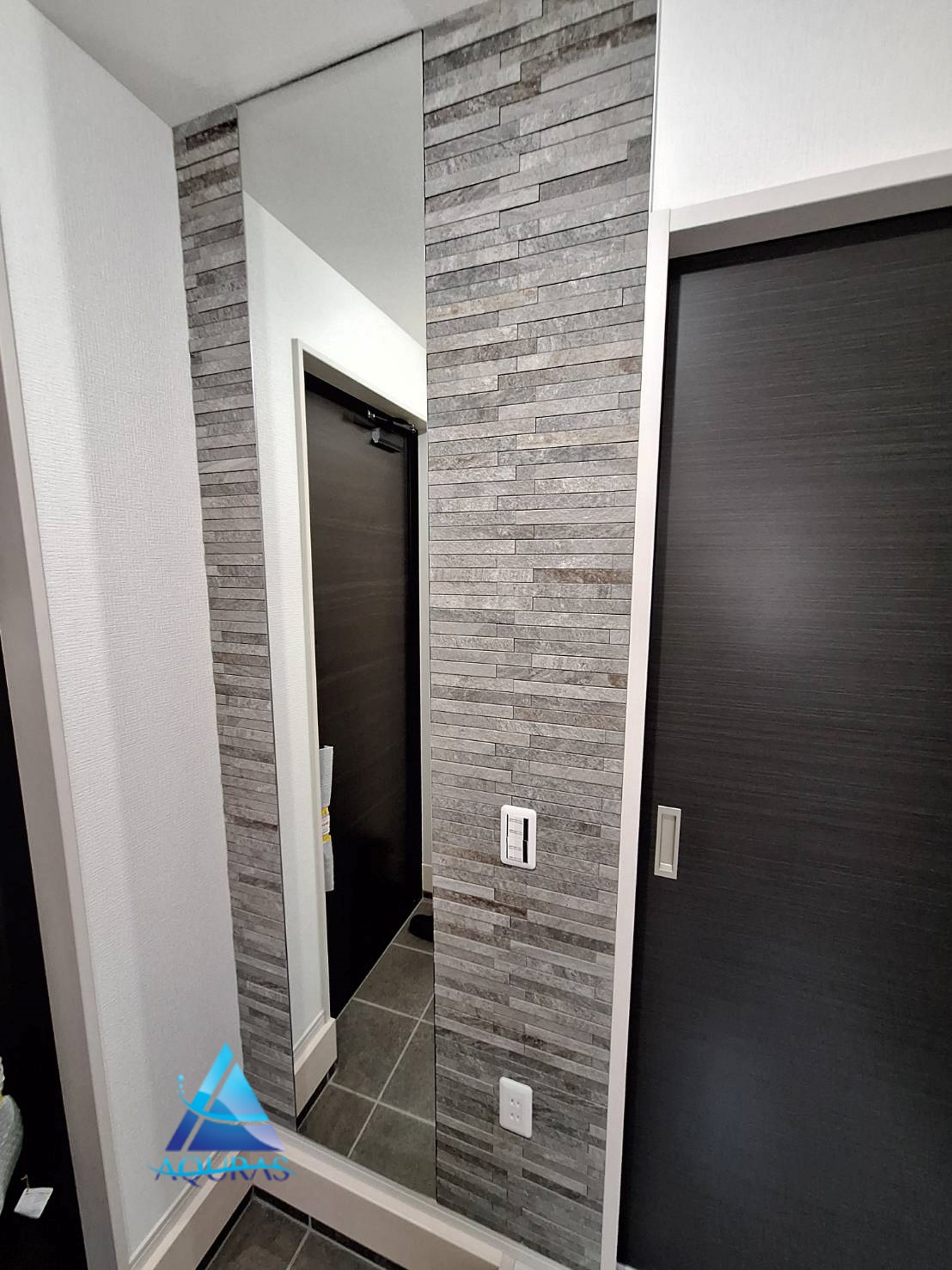 エコカラット 玄関【グランクォーツ】(ライトグレー)芋貼り+ミラー幅45cm