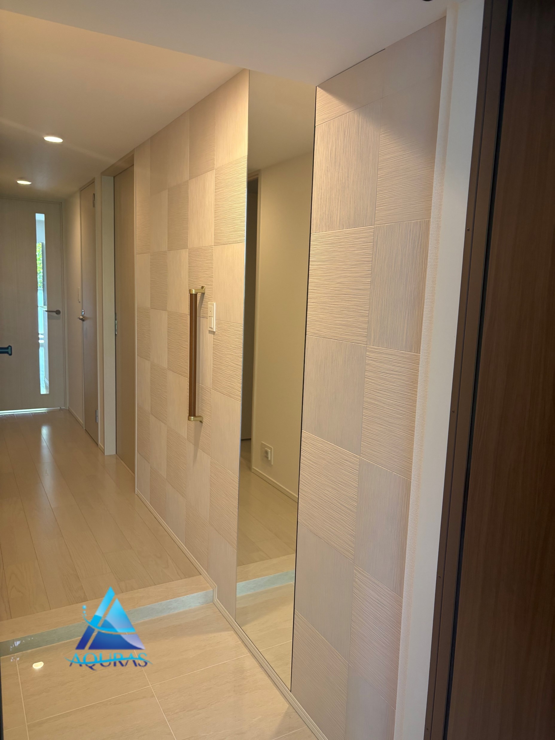 エコカラット 玄関【たけひご】(ライトベージュ)+ミラー幅45cm 市松貼り