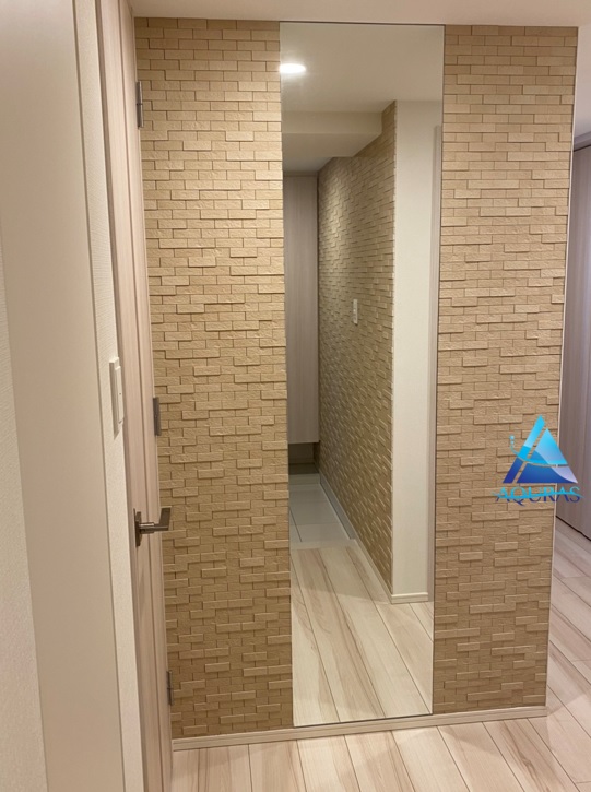 エコカラット 玄関・廊下 【ラフクォーツ】(ライトグレー)+ミラー幅45cm