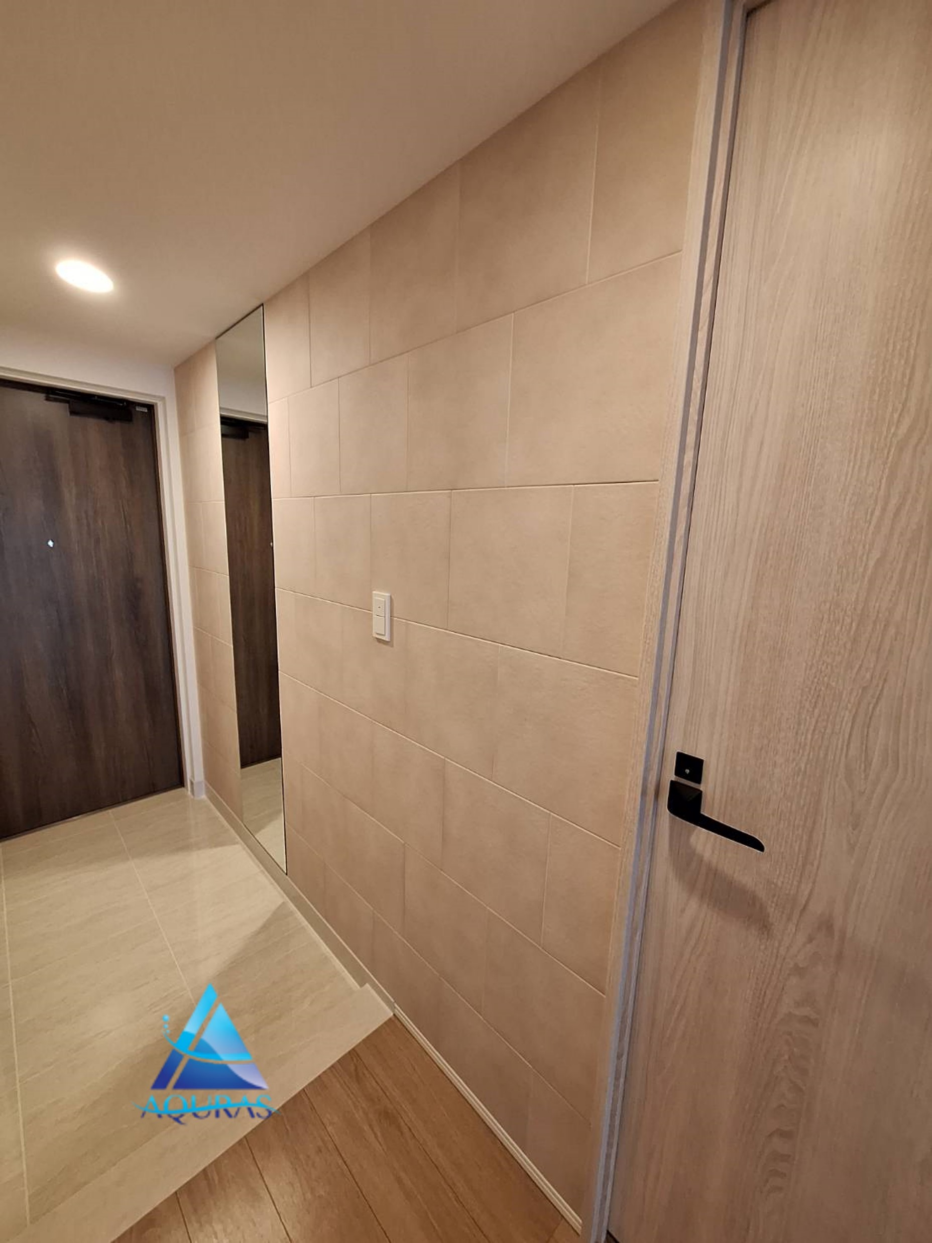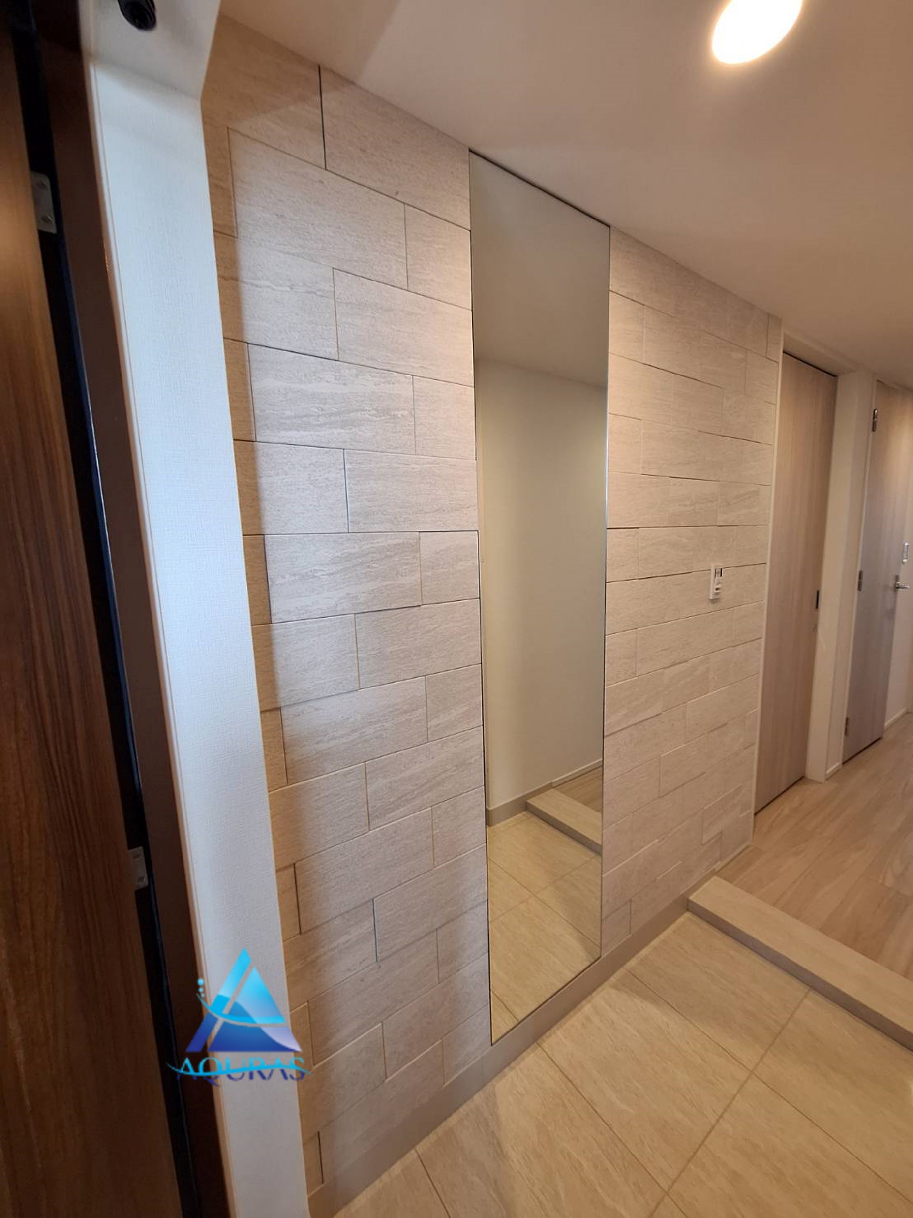 エコカラット 玄関【ラフクォーツ】(ライトグレー)+ミラー幅60cm