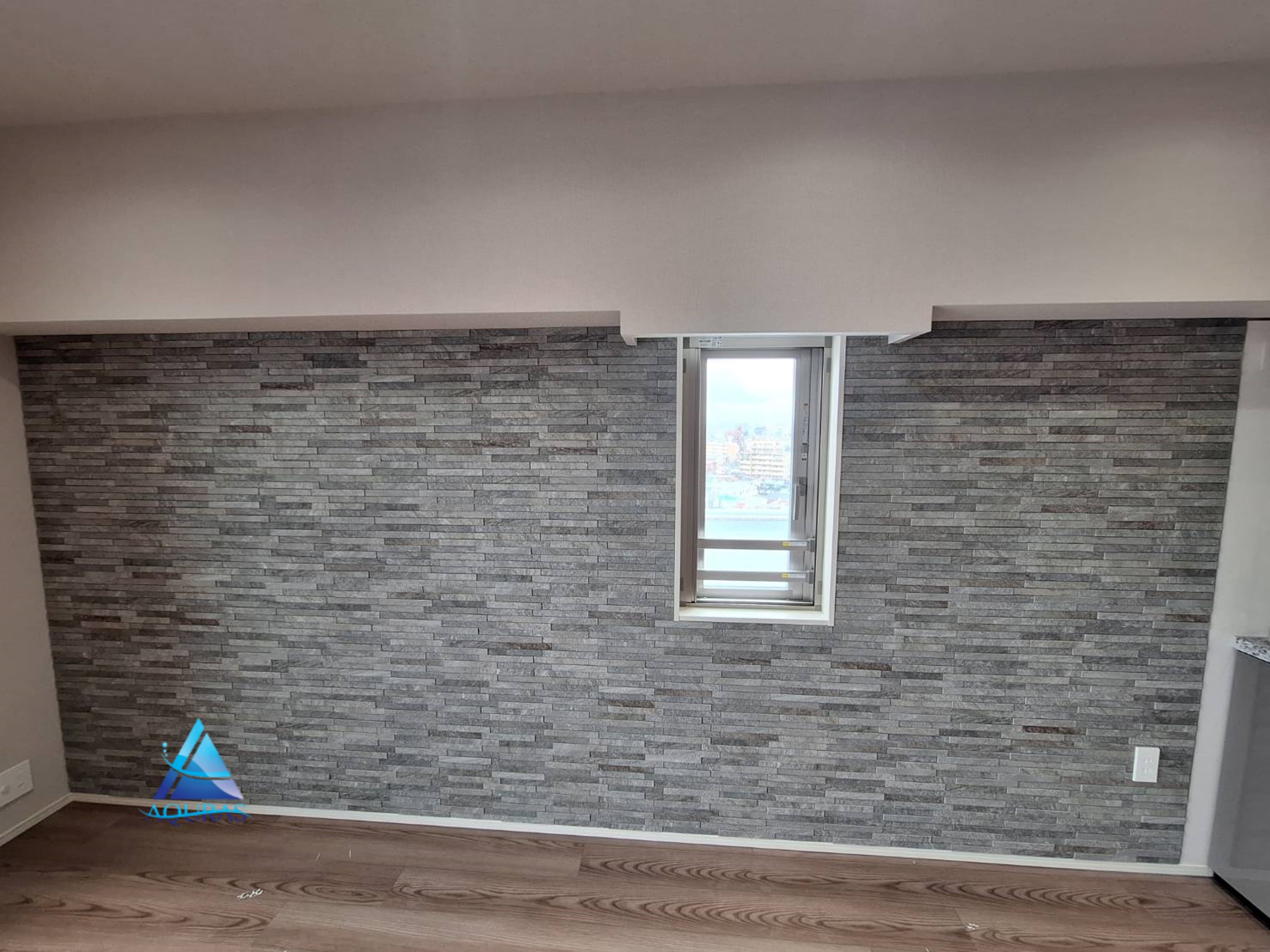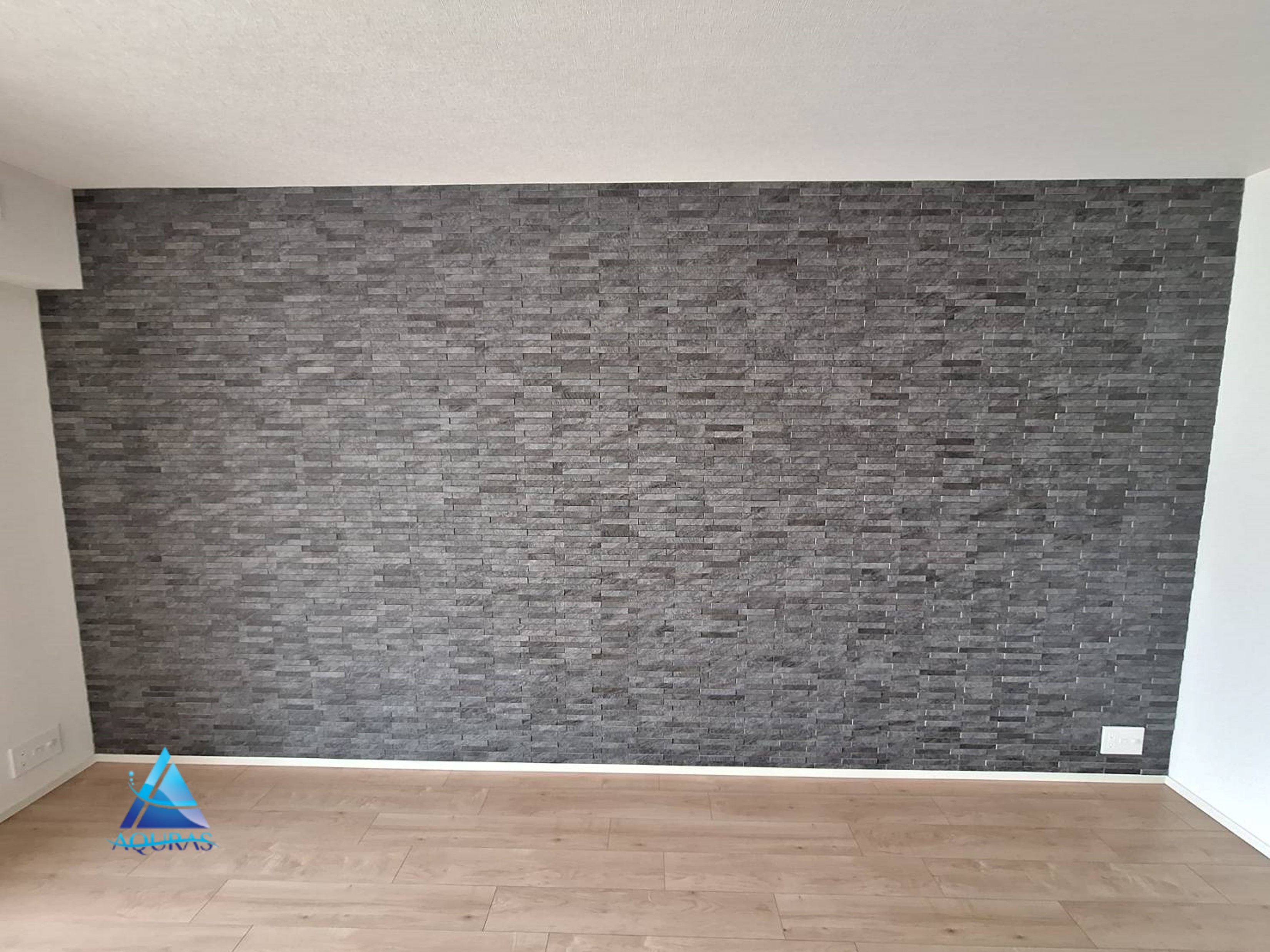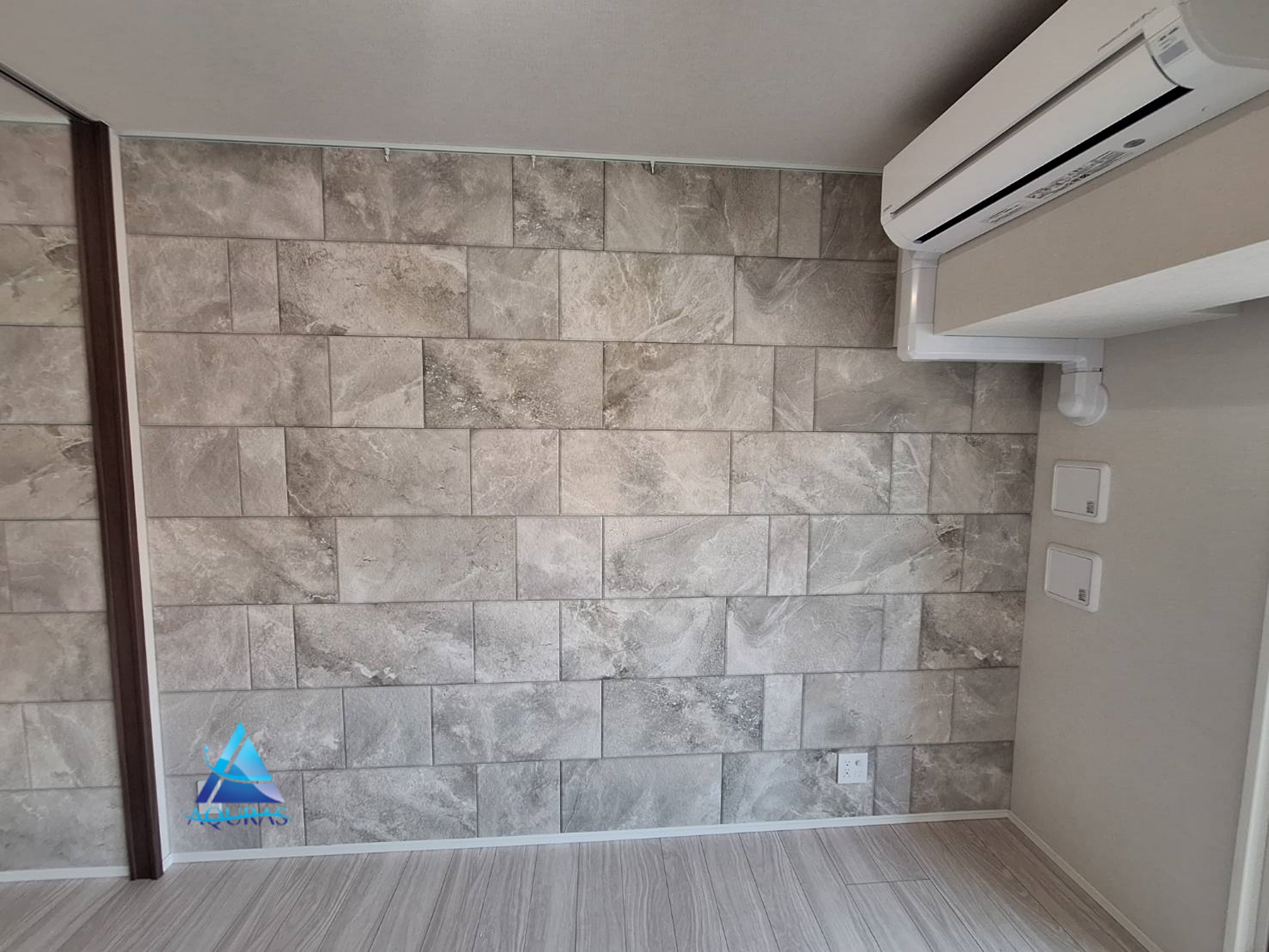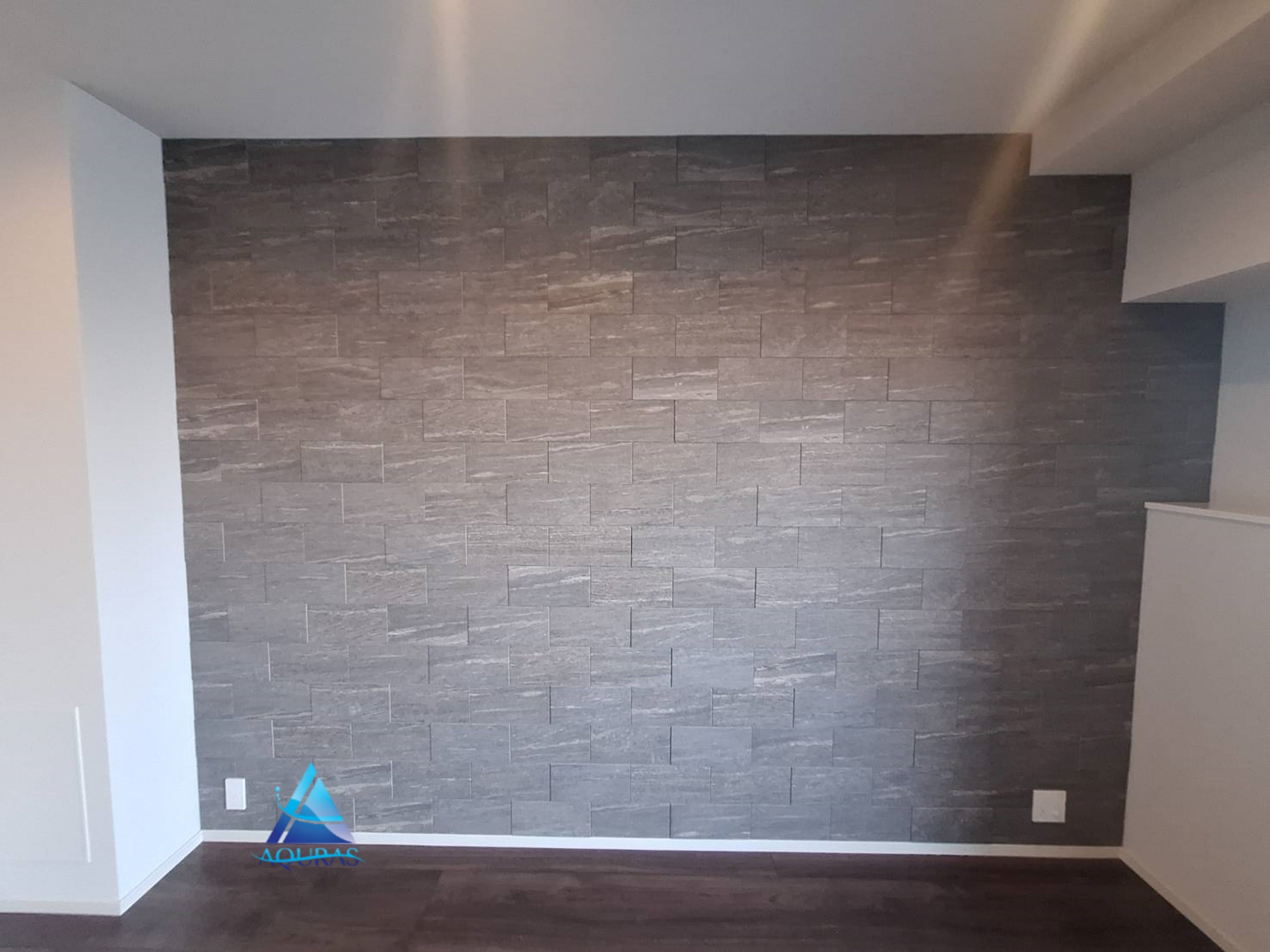エコカラット リビング【ストーングレース】(グレー)芋貼り+TV壁掛けビルトイン配線工事