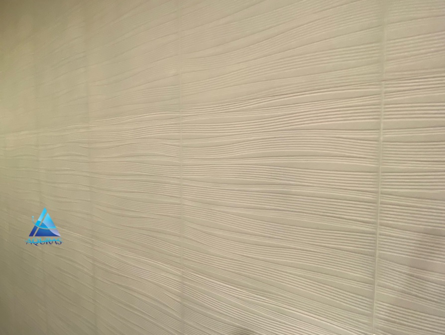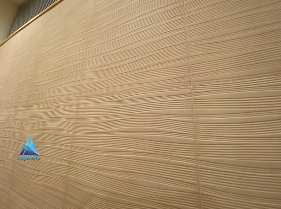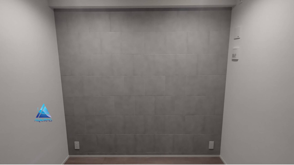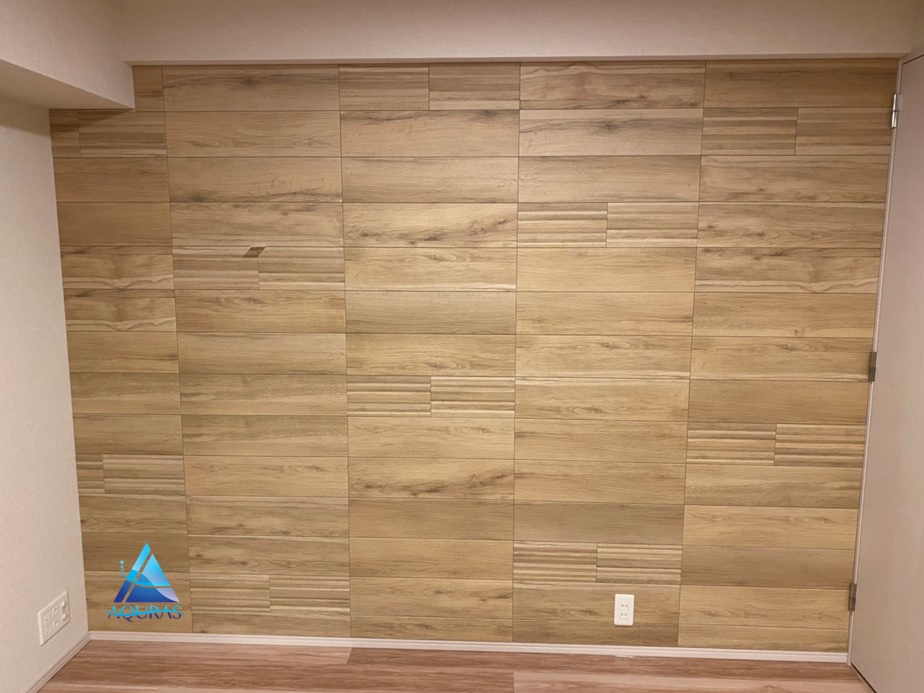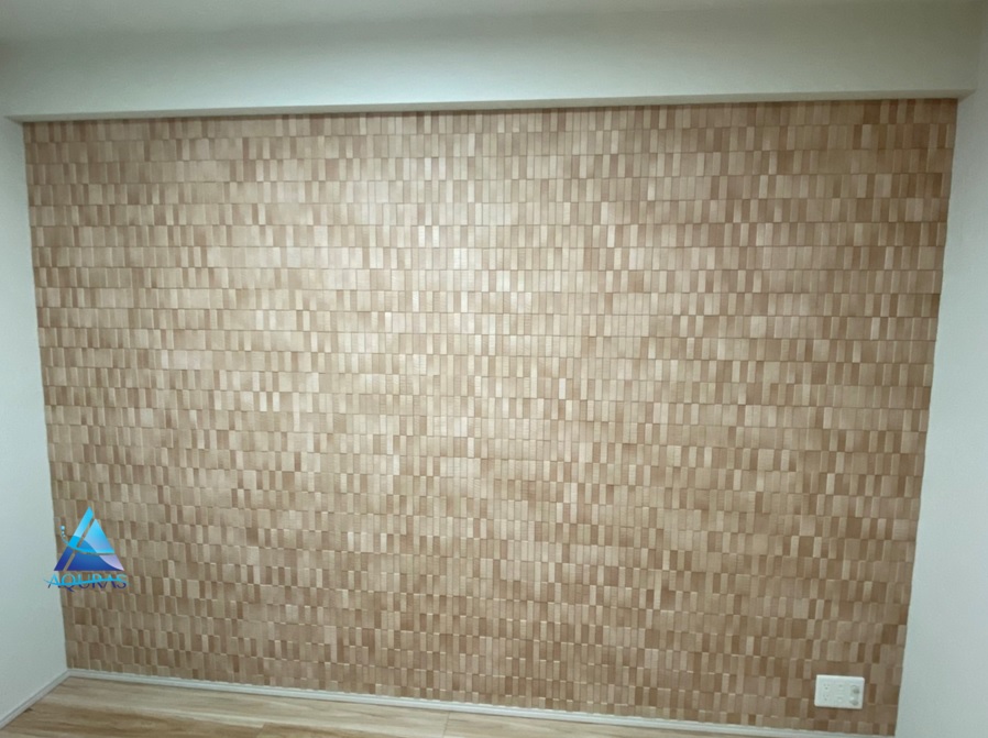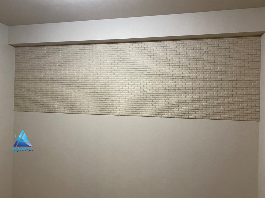 洋室 【ランド石ハツリ面】(ベージュ)縦3枚分の部分貼り 洋室 【スプライン】(ホワイト)縦3枚分の部分貼り