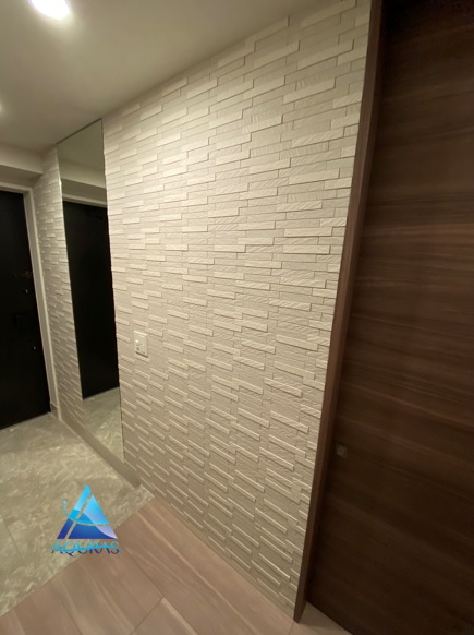 エコカラット リビング【ディニタ】(ダークグレー)+TV壁掛け金具設置+ビルトイン配線工事 トイレ【パールマスクⅡ】(パールバニラ) 玄関【ストーングレース】(ベージュ)馬貼り