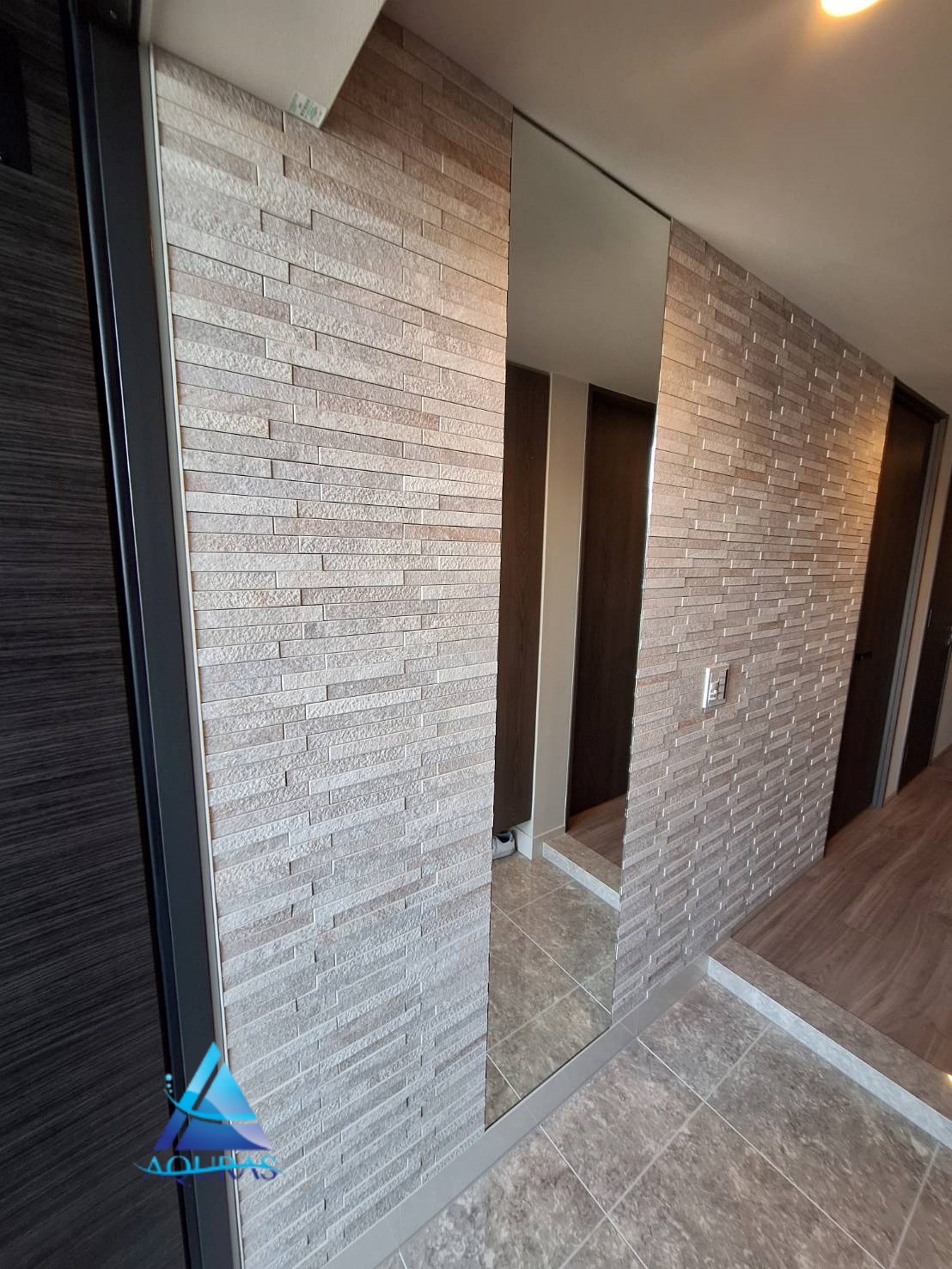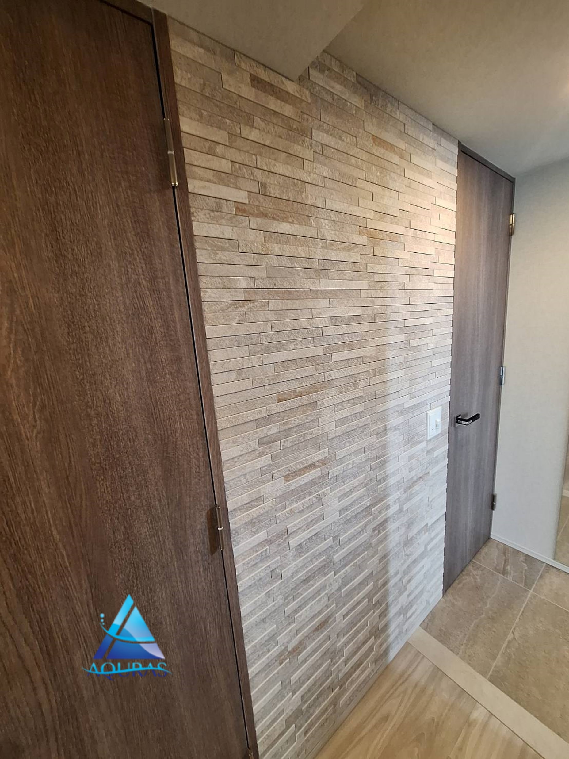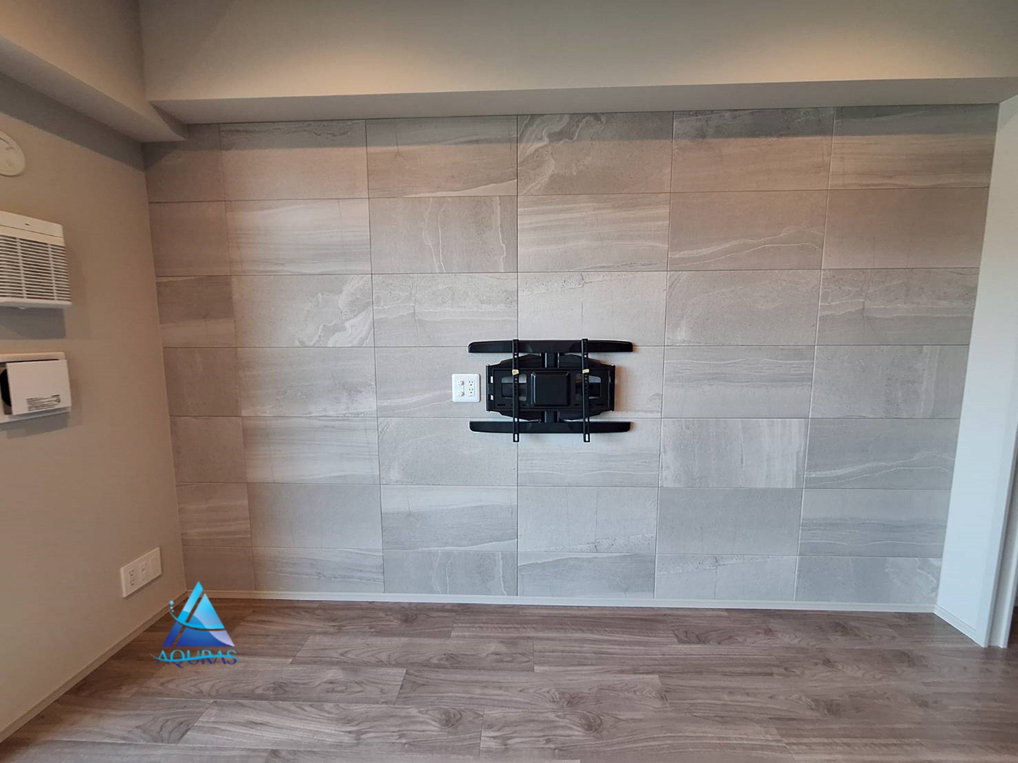エコカラット【ストーングレース】(グレー)芋貼り+TV壁掛けビルトイン配線工事