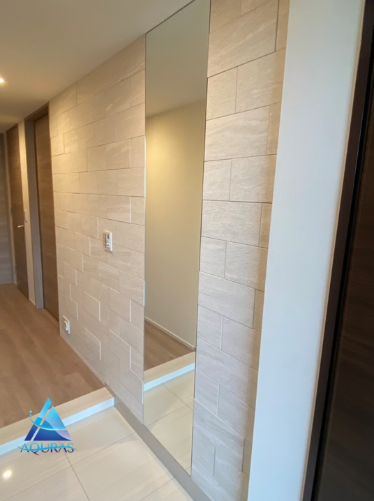 エコカラット 洋室 【ファインベース】(グレー)馬貼り 玄関 【グラナスルドラ】(ホワイト)+ミラー幅45cm