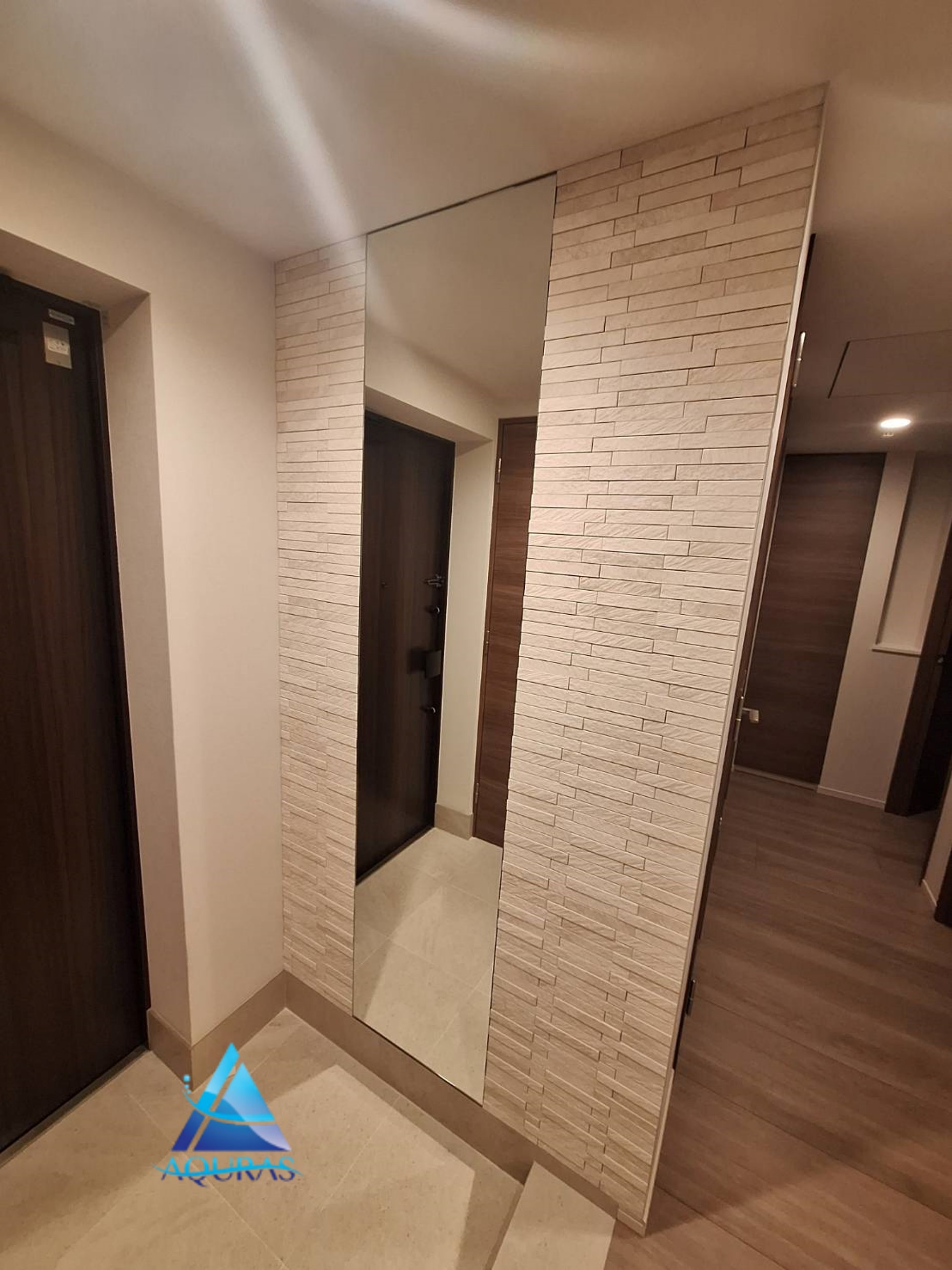 エコカラット リビング【アンティークマーブル】(アイボリー) 玄関【ラフクォーツ】(ライトグレー)+ミラー幅60cm アクセントクロス トイレ サンゲツ FE76112