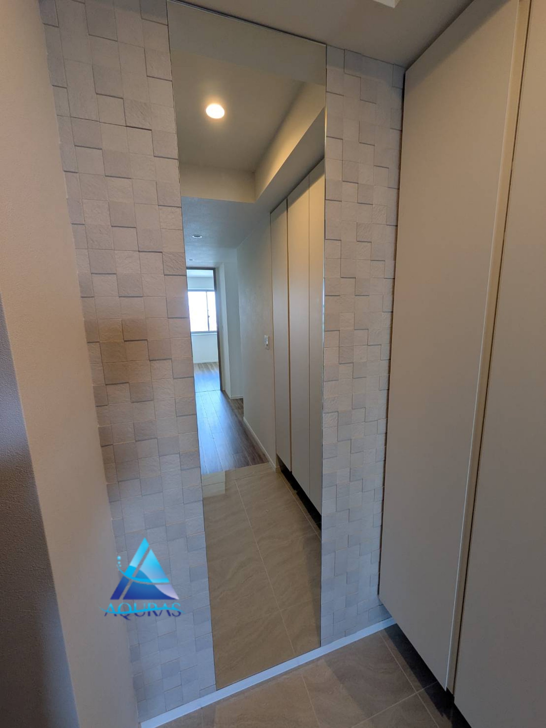 エコカラット 玄関【ペトラスクエア】(ライトグレー)+ミラー幅45cm